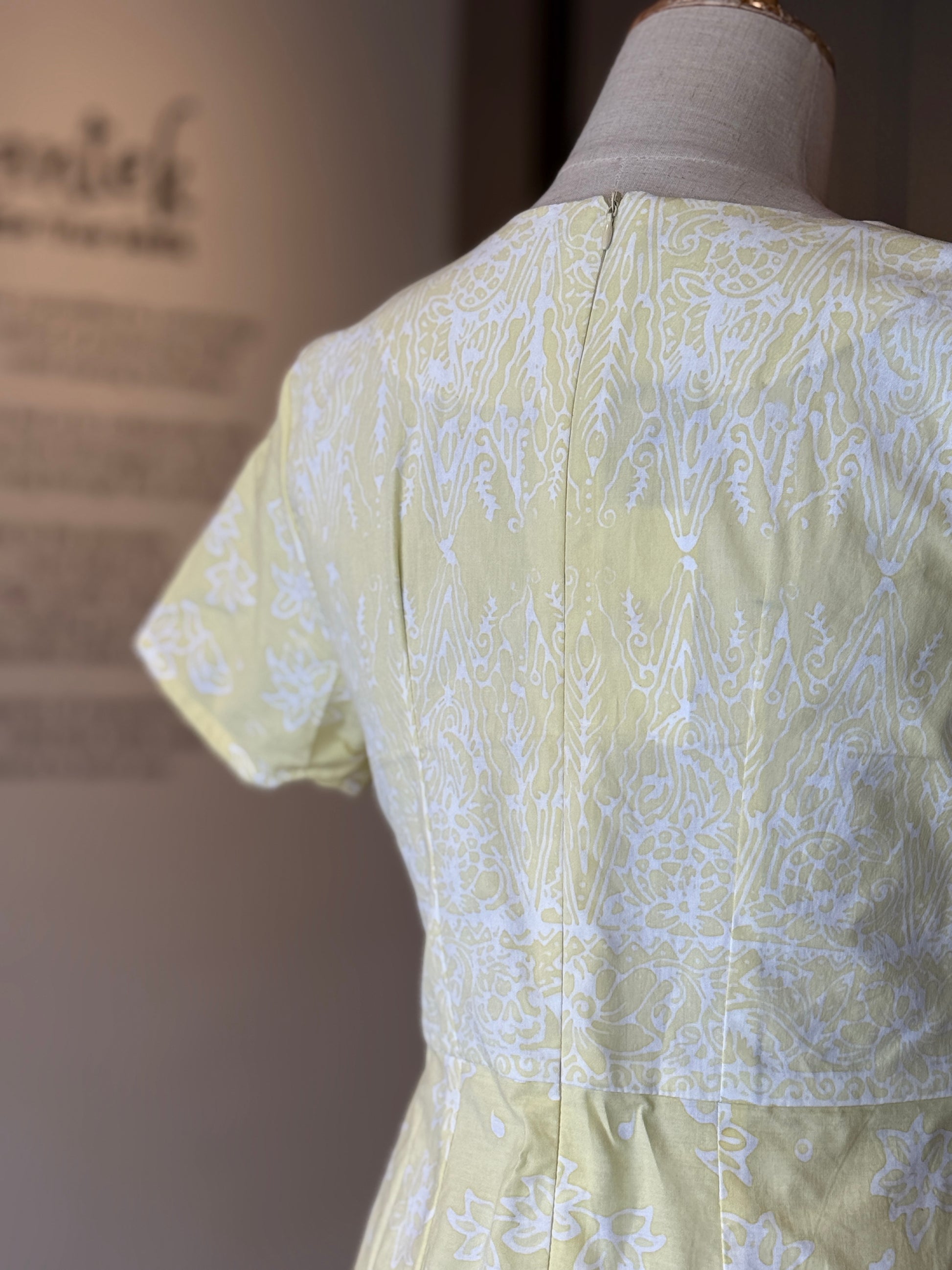 - Style: Round neckline, short sleeves, and intricate hand-stamped Batik motifs