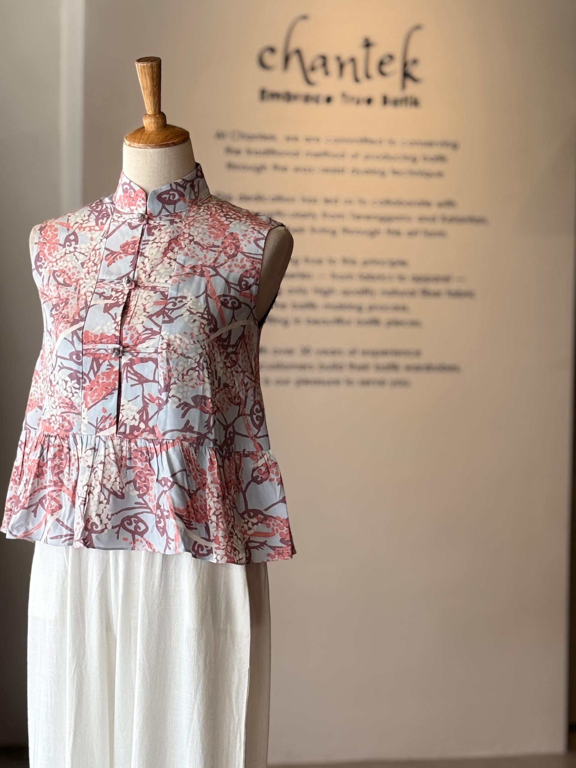 Elevate your everyday style with the Aura Qipao Top, a modern twist on timeless tradition. Handmade from exquisite batik fabric in a soft cotton-viscose blend, this piece blends cultural heritage with effortless comfort.