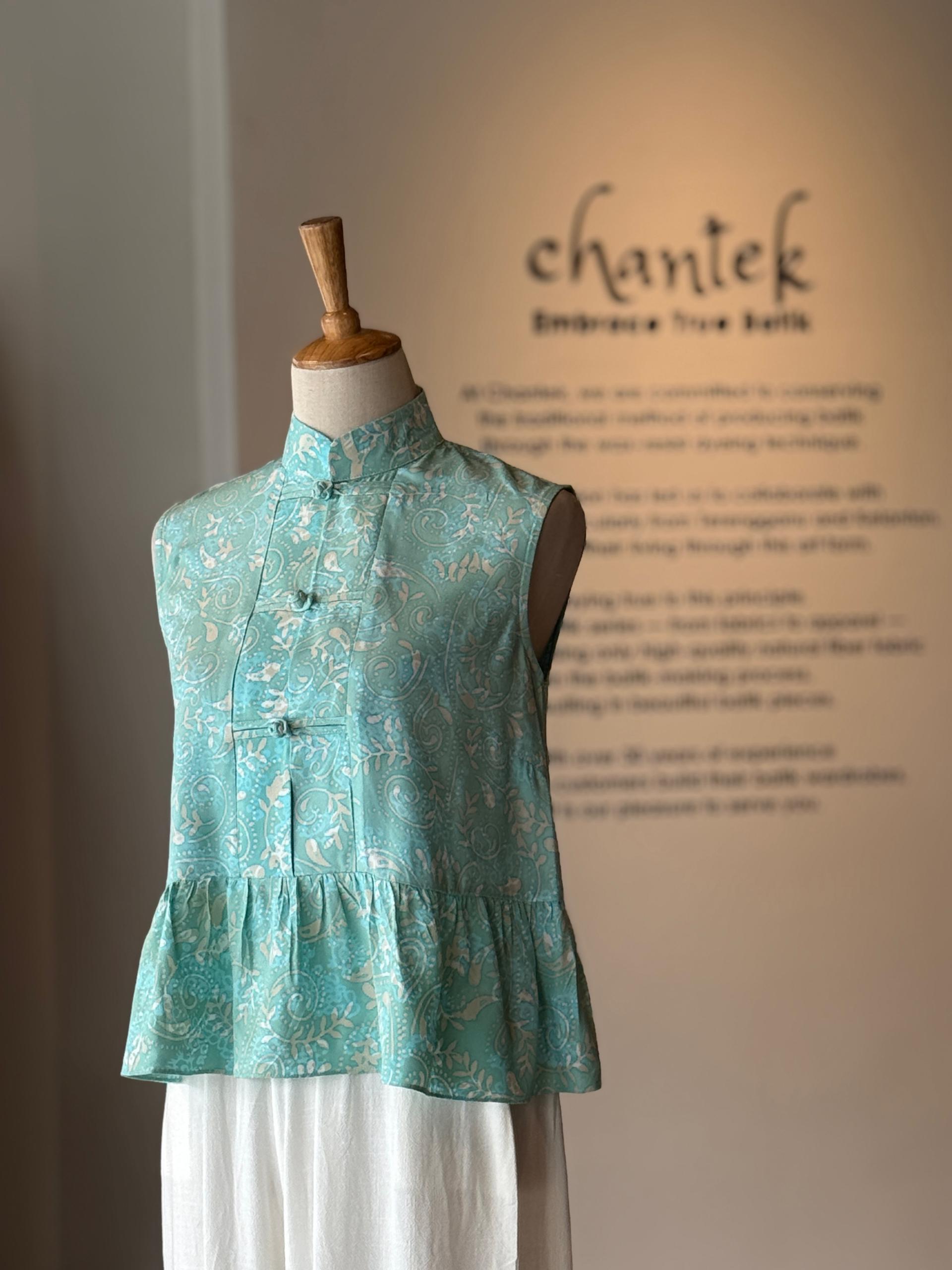 Featuring a classic Chinese collar and a handmade traditional button knot at the center, the Aura Qipao Top celebrates artisanal craftsmanship in every stitch. The frilled waist detail adds a touch of feminine charm, while the sleeveless cut keeps it chic and versatile for any occasion.
