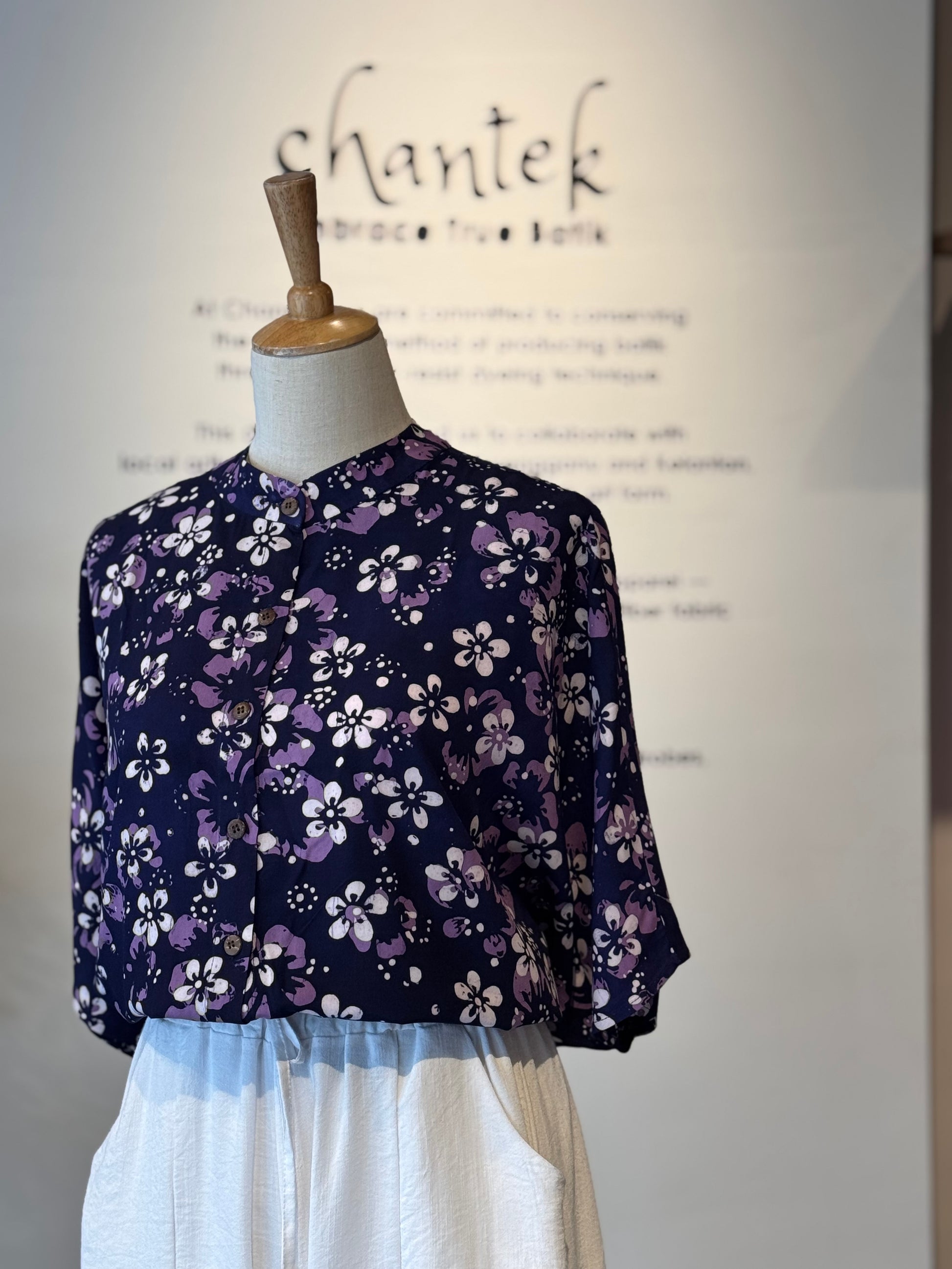 The shirt features a button-down front with delicate buttons that complement the rich hues and designs of the batik. The fabric itself is lightweight yet durable, making it perfect for various seasons and occasions.