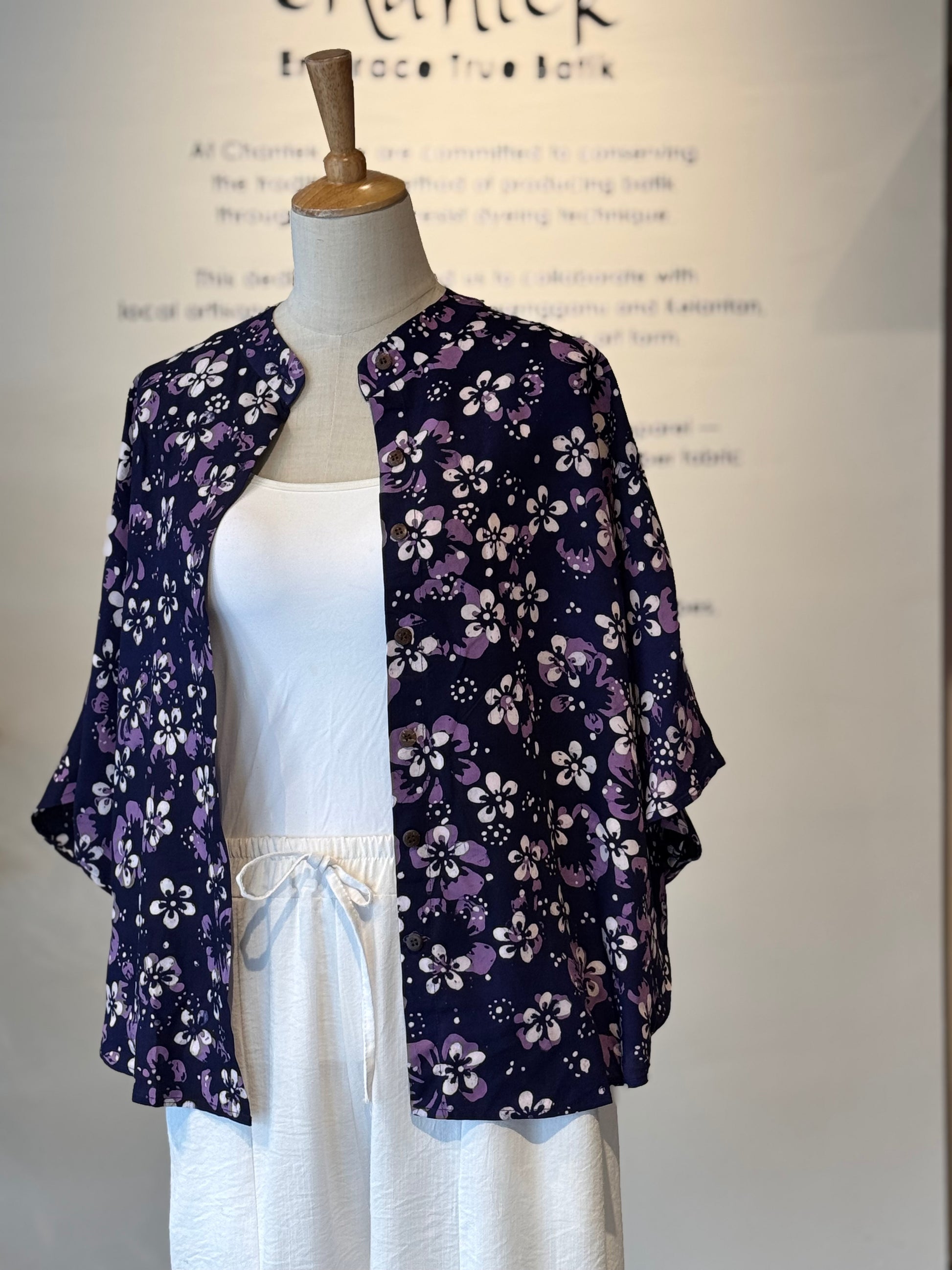 A cardigan shirt made from Kelantan handmade batik is a versatile piece that can be worn in multiple stylish ways.