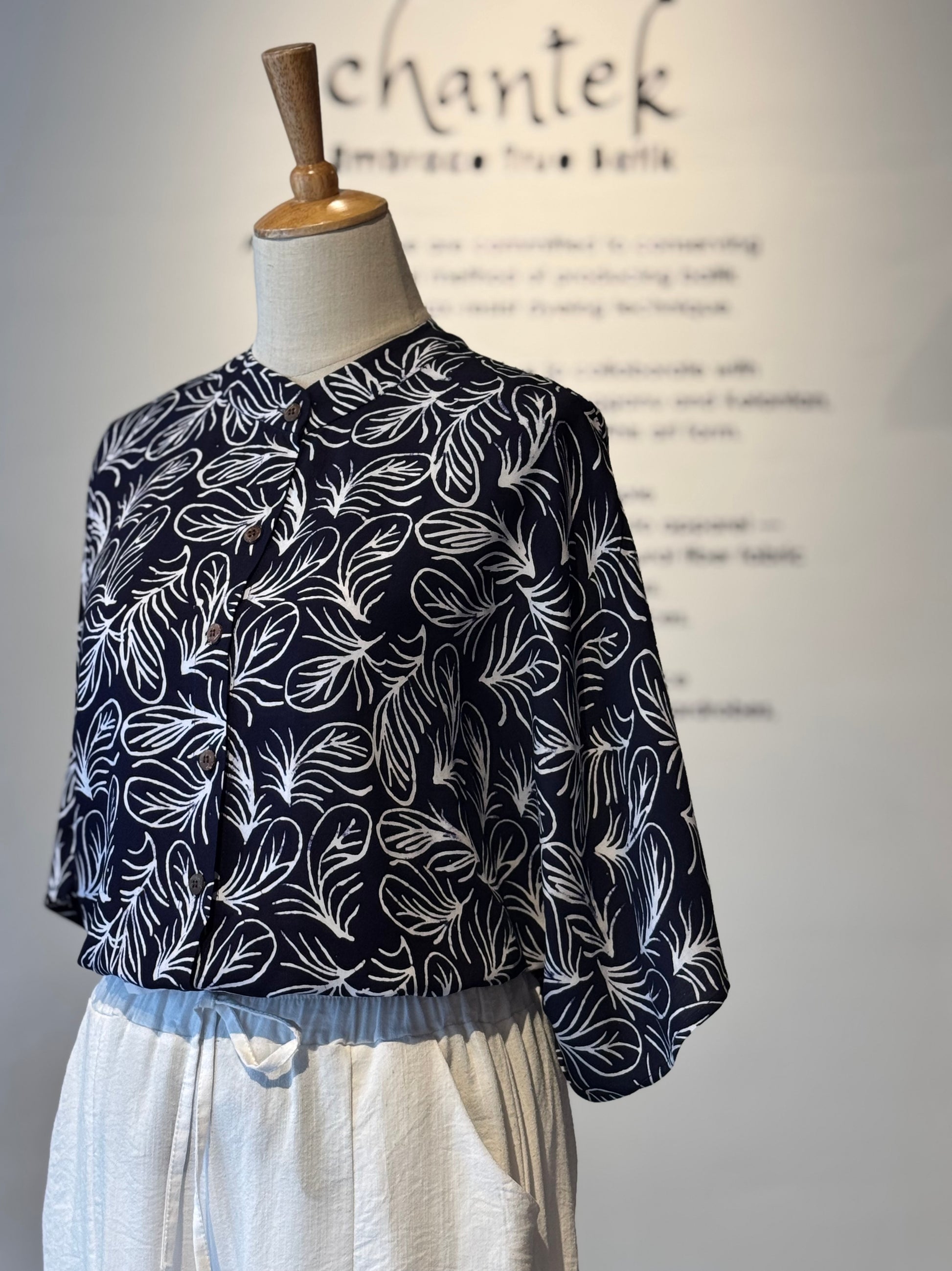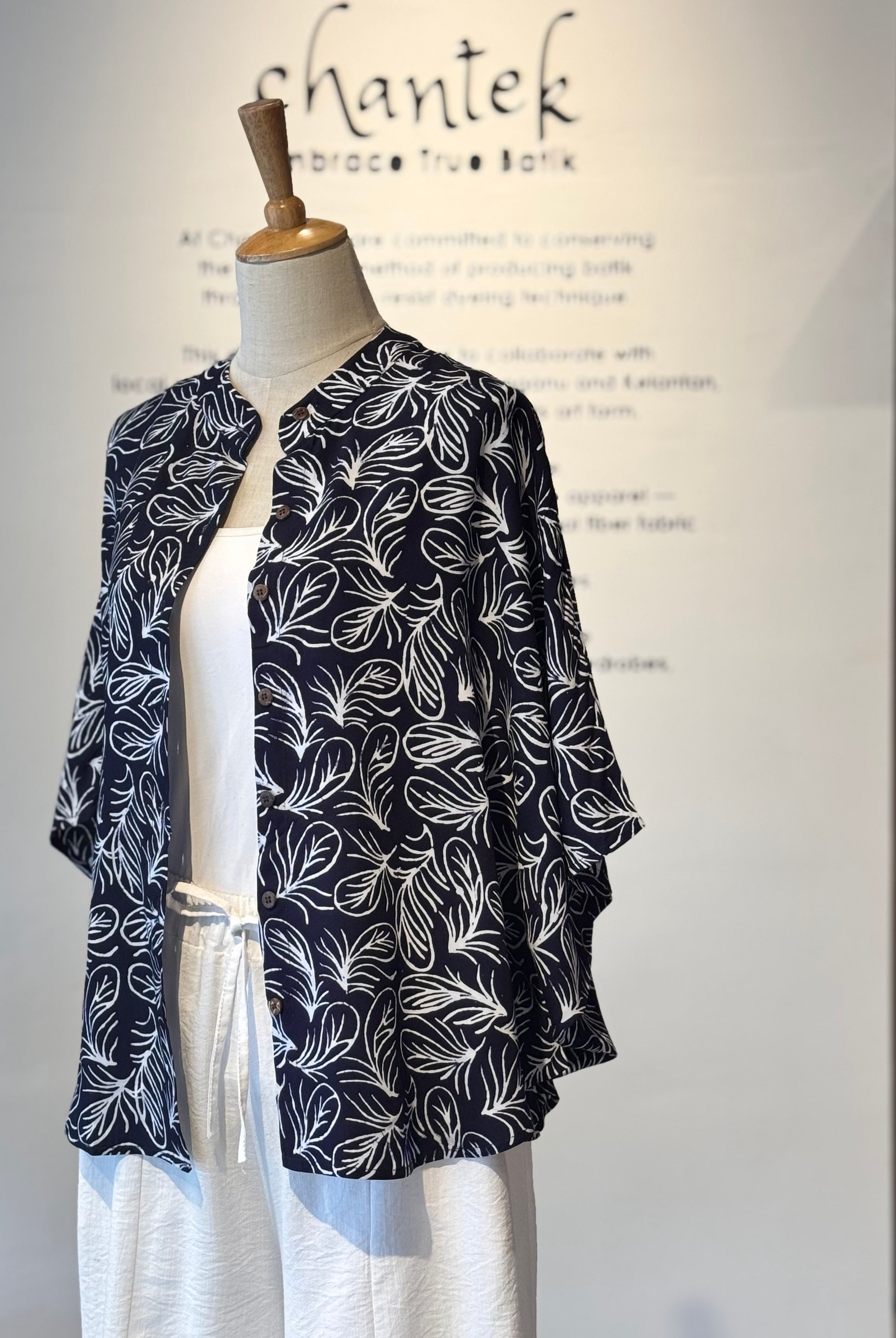 Transforming into a cardigan, the shirt takes on a new dimension. Leave it unbuttoned and wear it over a plain top or dress to add a layer of cultural charm. The batik patterns, now more visible, create an eye-catching ensemble that blends tradition with contemporary fashion.