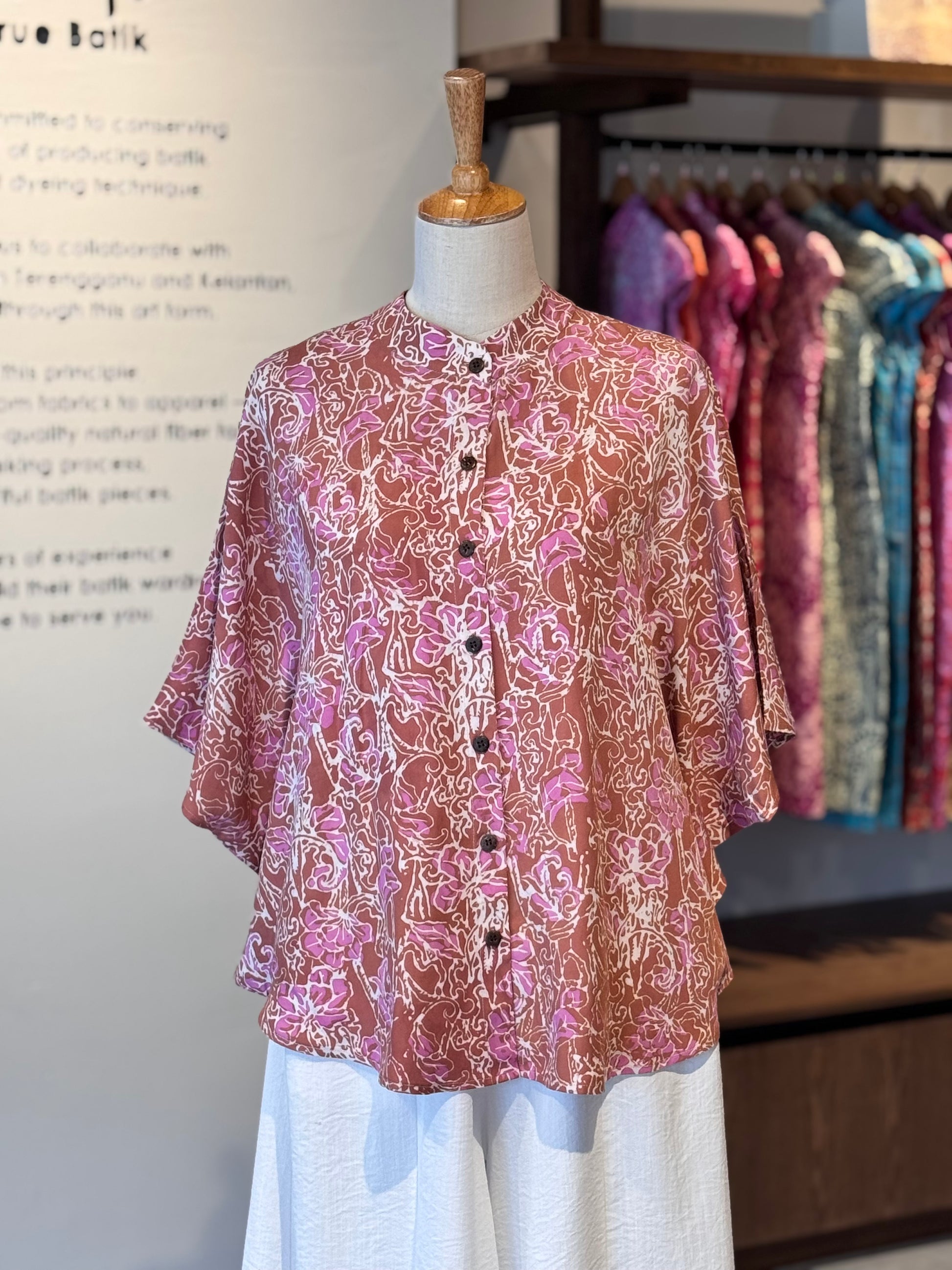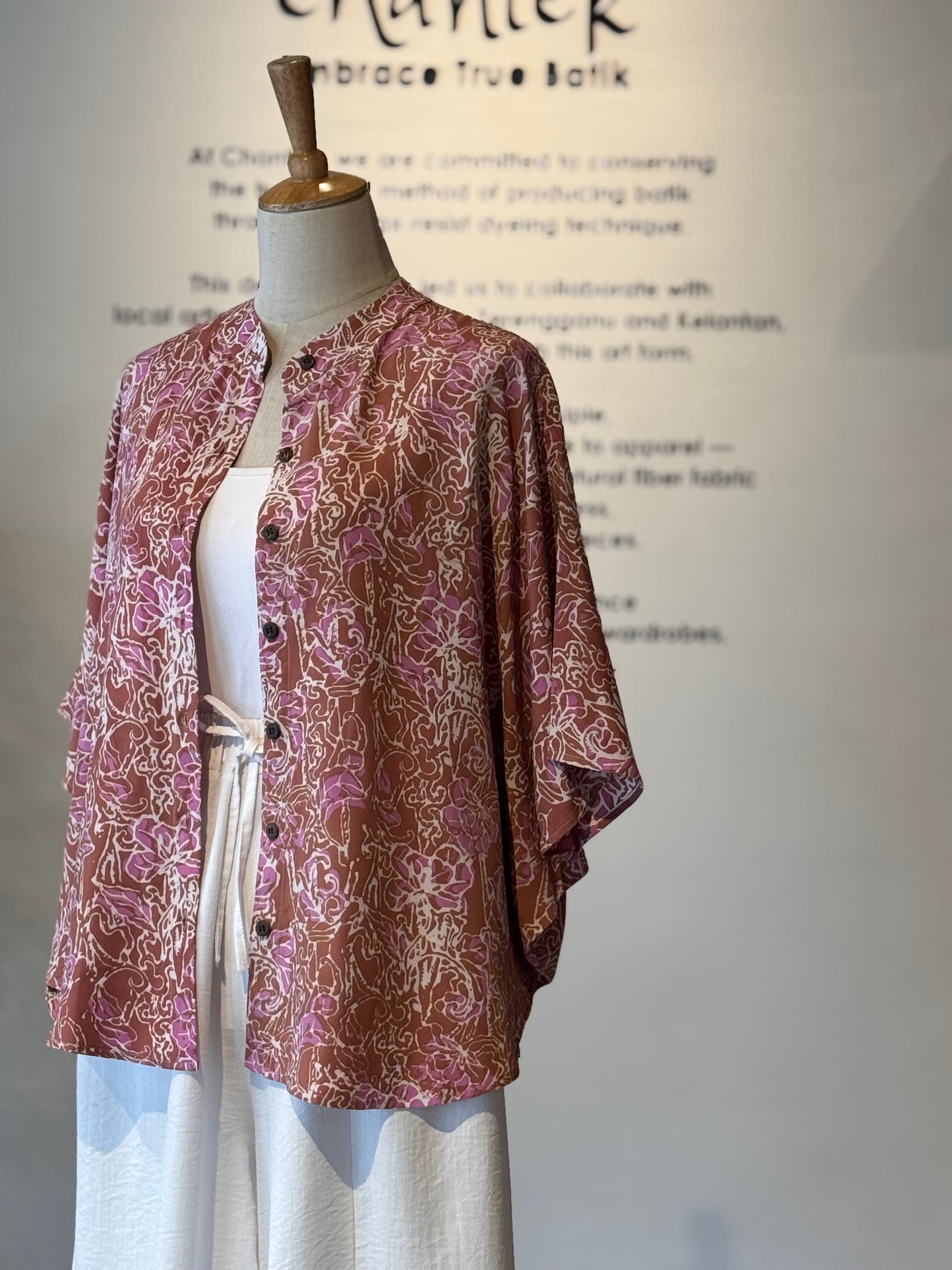 A cardigan shirt made from Kelantan handmade batik is a versatile piece that can be worn in multiple stylish ways.