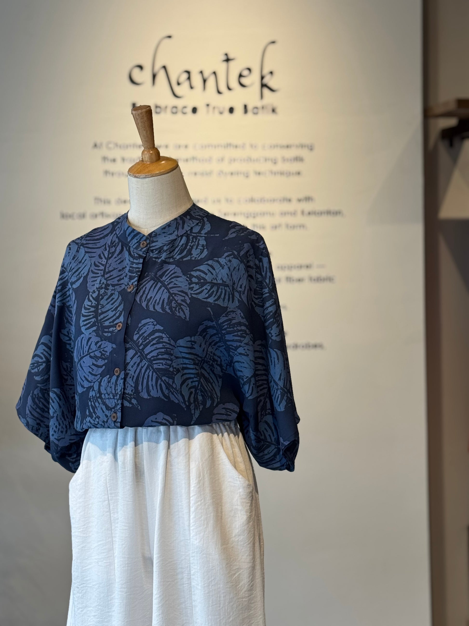 When worn as a shirt, it drapes elegantly, showcasing the unique motifs of Kelantanese batik. The collar adds a touch of sophistication, whether worn buttoned up for a formal look or casually open for a relaxed vibe.