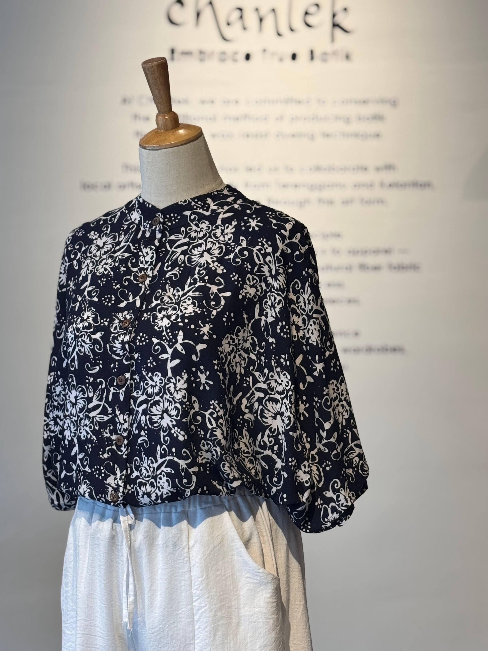 When worn as a shirt, it drapes elegantly, showcasing the unique motifs of Kelantanese batik. The collar adds a touch of sophistication, whether worn buttoned up for a formal look or casually open for a relaxed vibe.