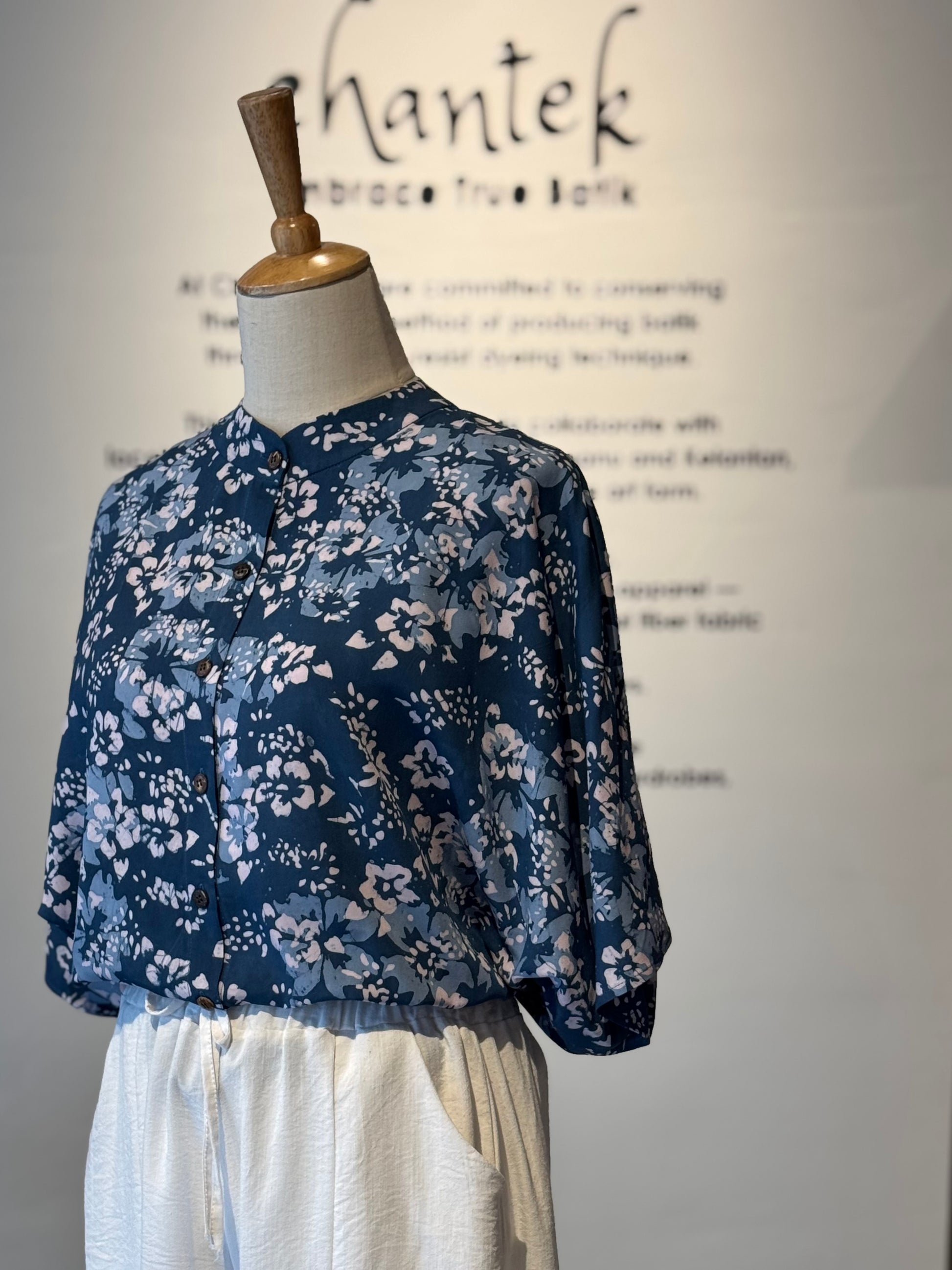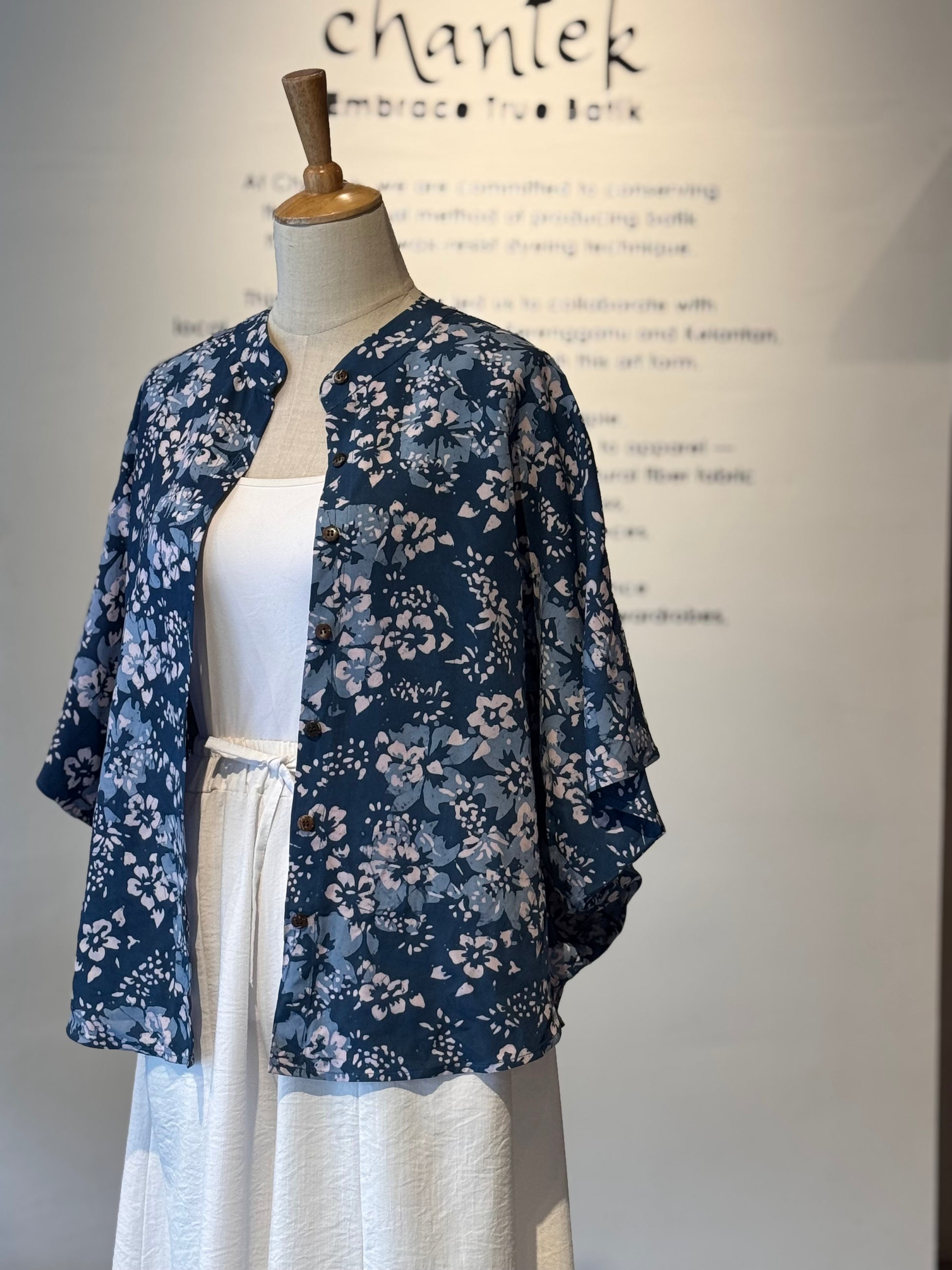 A cardigan shirt made from Kelantan handmade batik is a versatile piece that can be worn in multiple stylish ways.