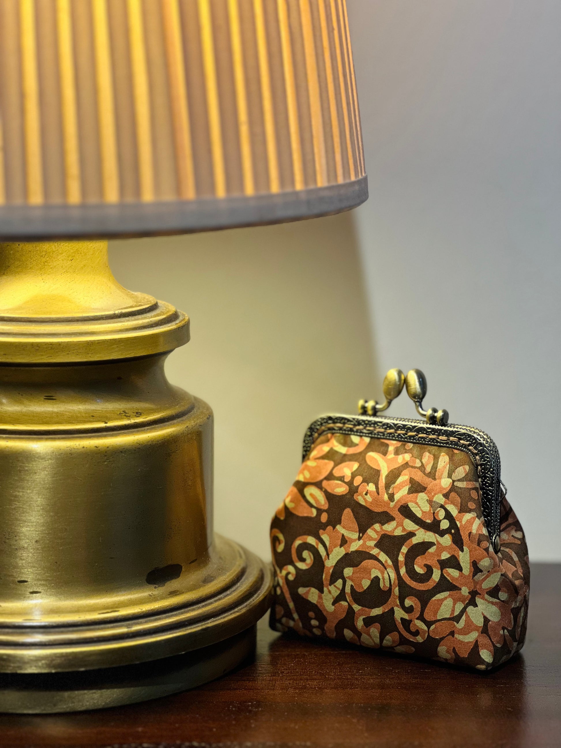 A small and cute coin purse crafted from Cotton Silk Batik Nang Wangi, showcasing beautiful hand-blocked batik artistry.