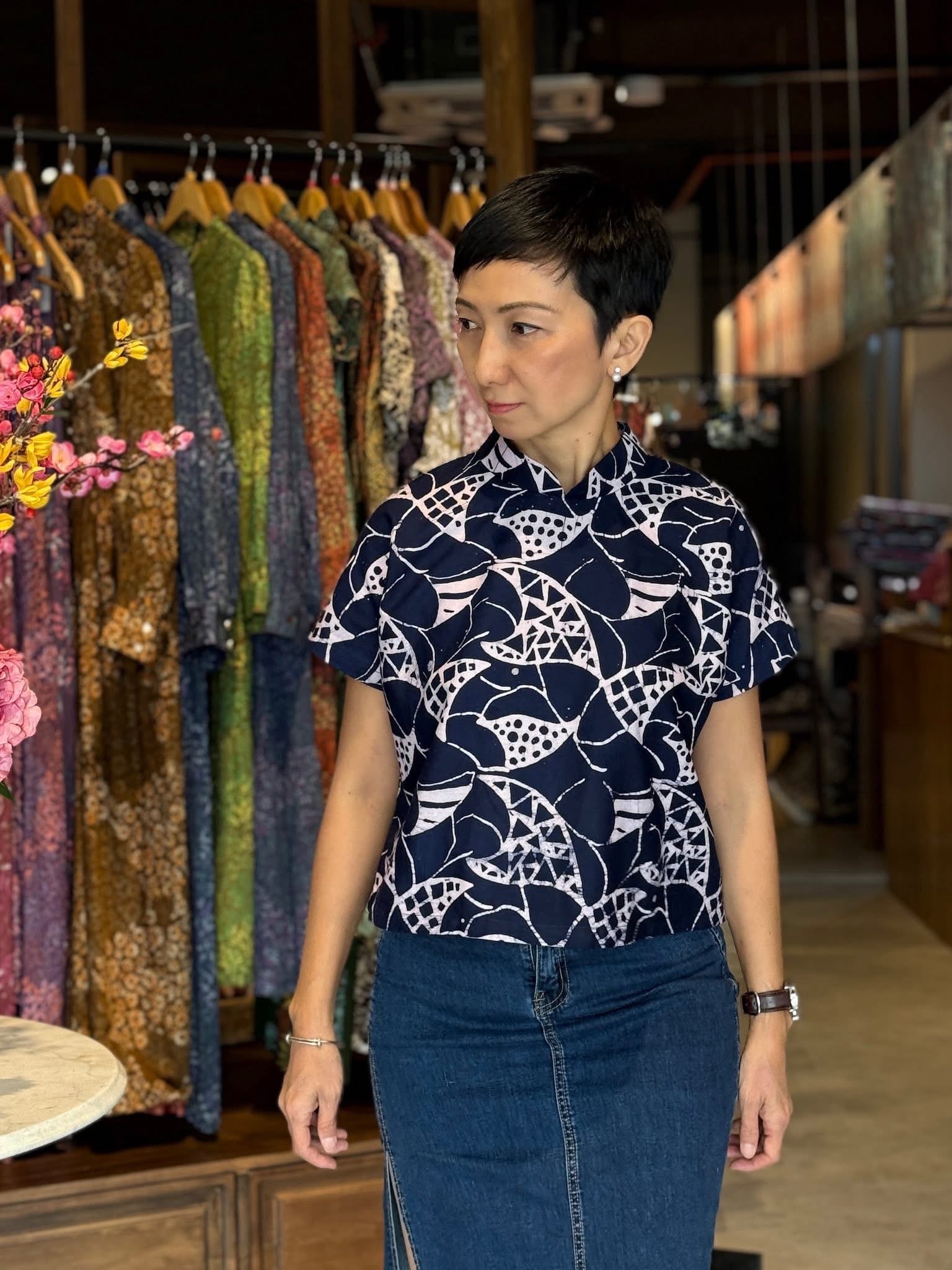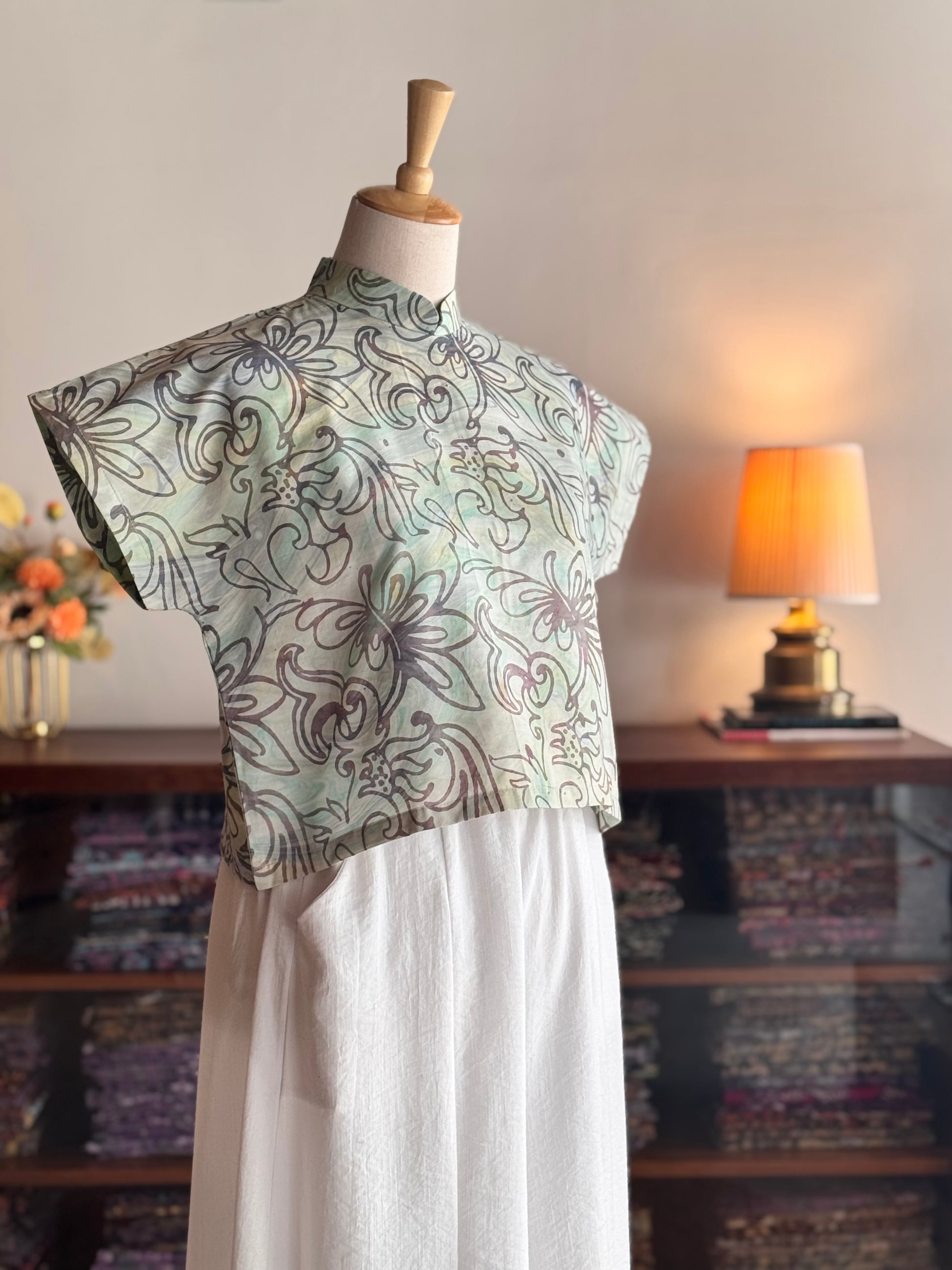 Loose fit mandarin collar Lisa top always evergreen in our customer’s eye.