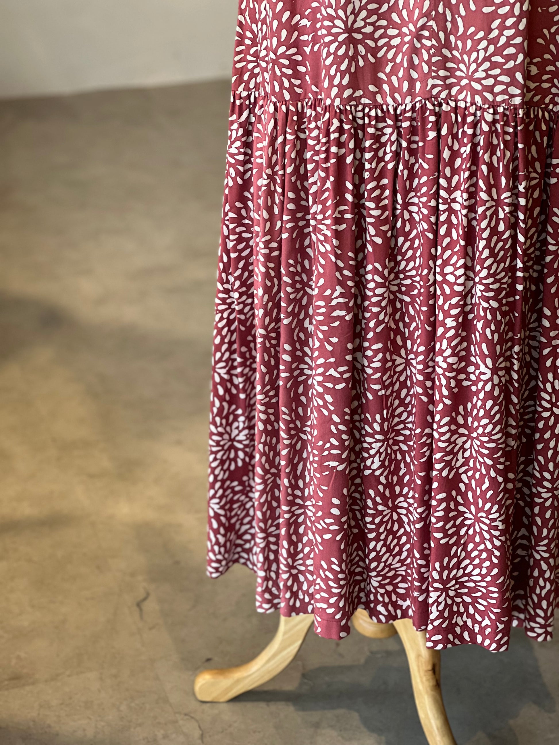This collection features one-layered batik, creating a simple and elegant look that gives each Lyna Dress its own natural character.