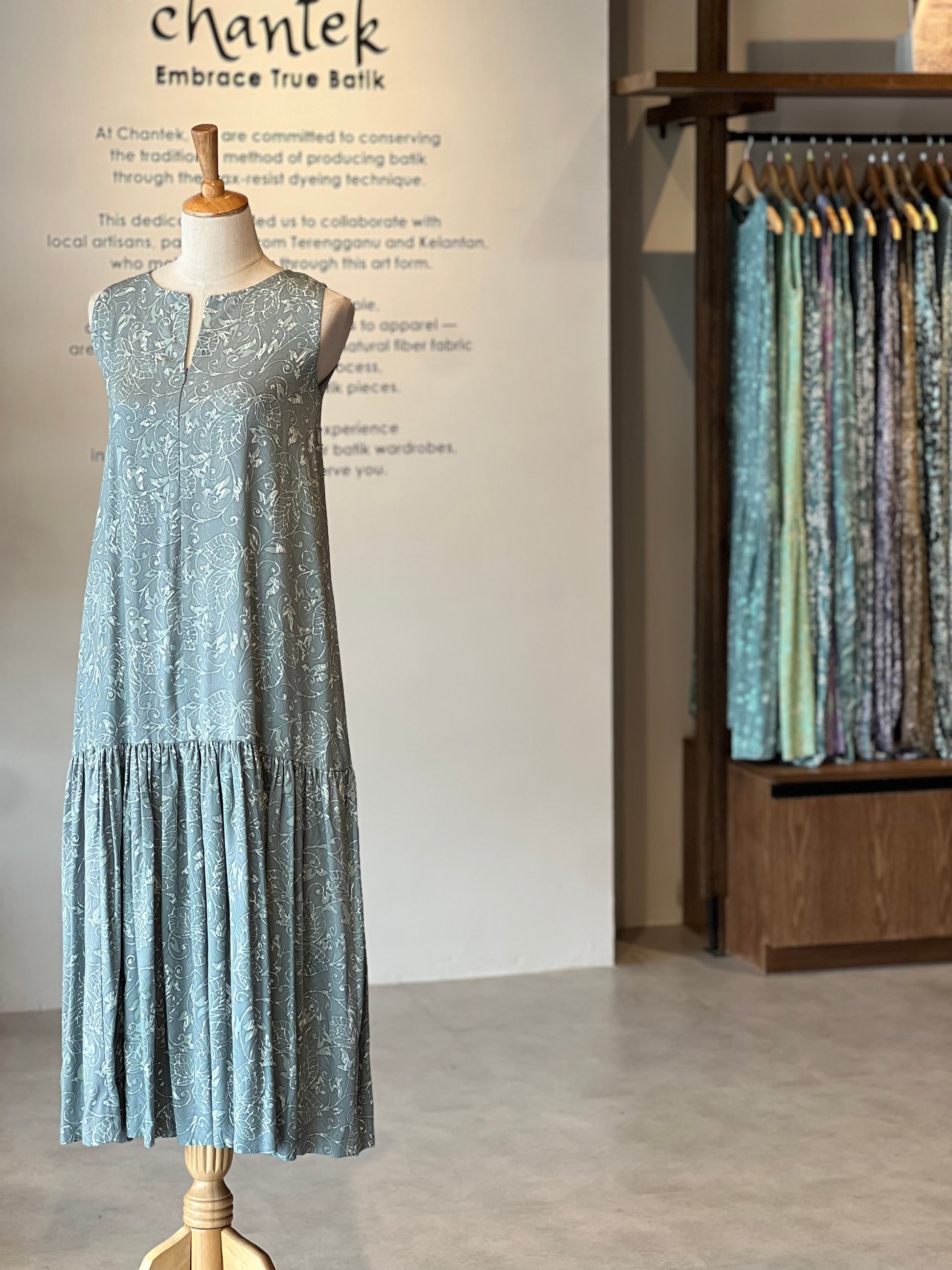 What makes this collection truly exclusive is its layered dye technique and multi-process batik work, creating depth, richness, and individuality in every pattern which makes each dress one-of-a-kind artwork that feels unique.