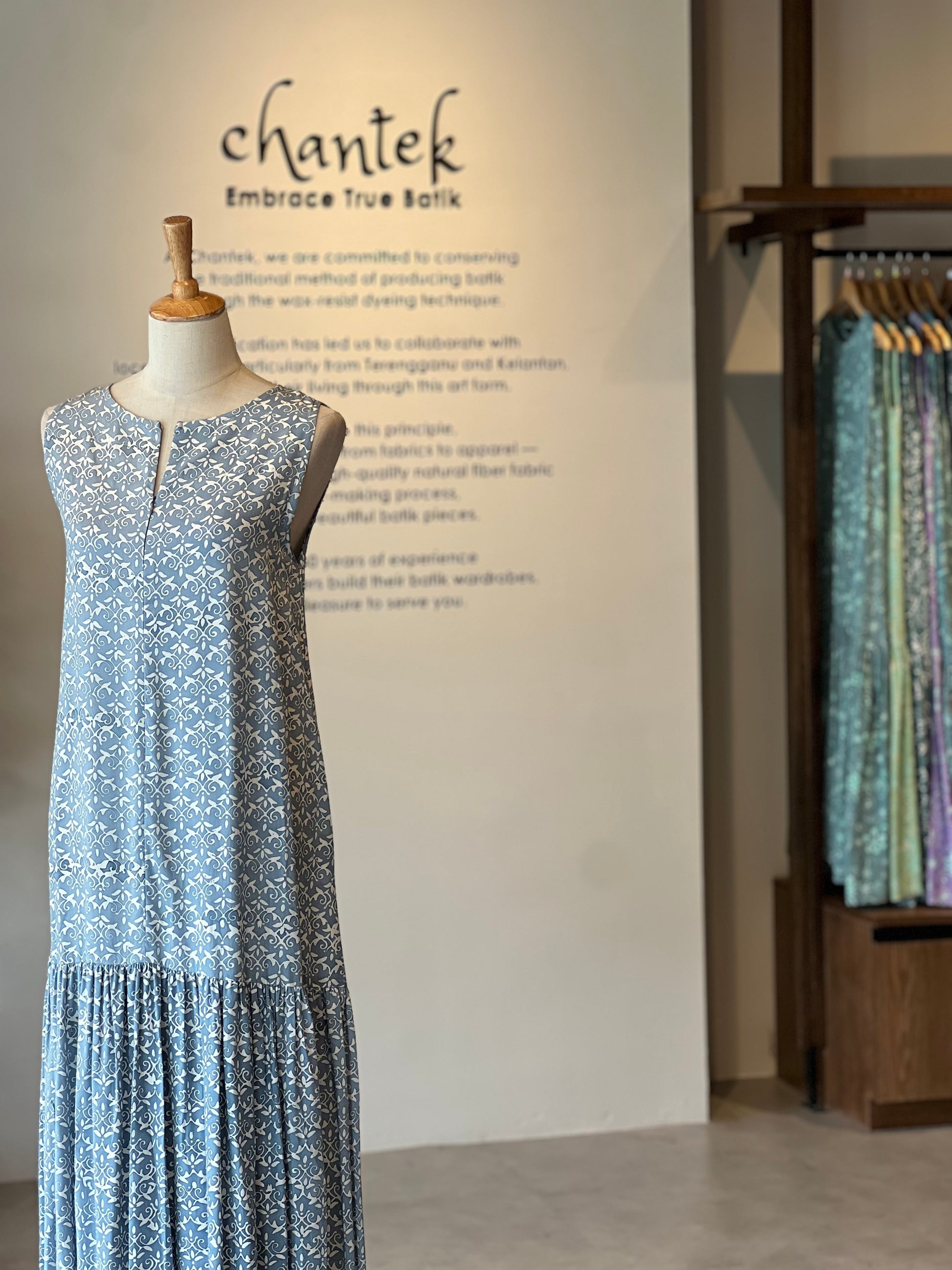 This collection features one-layered batik, creating a simple and elegant look that gives each Lyna Dress its own natural character.