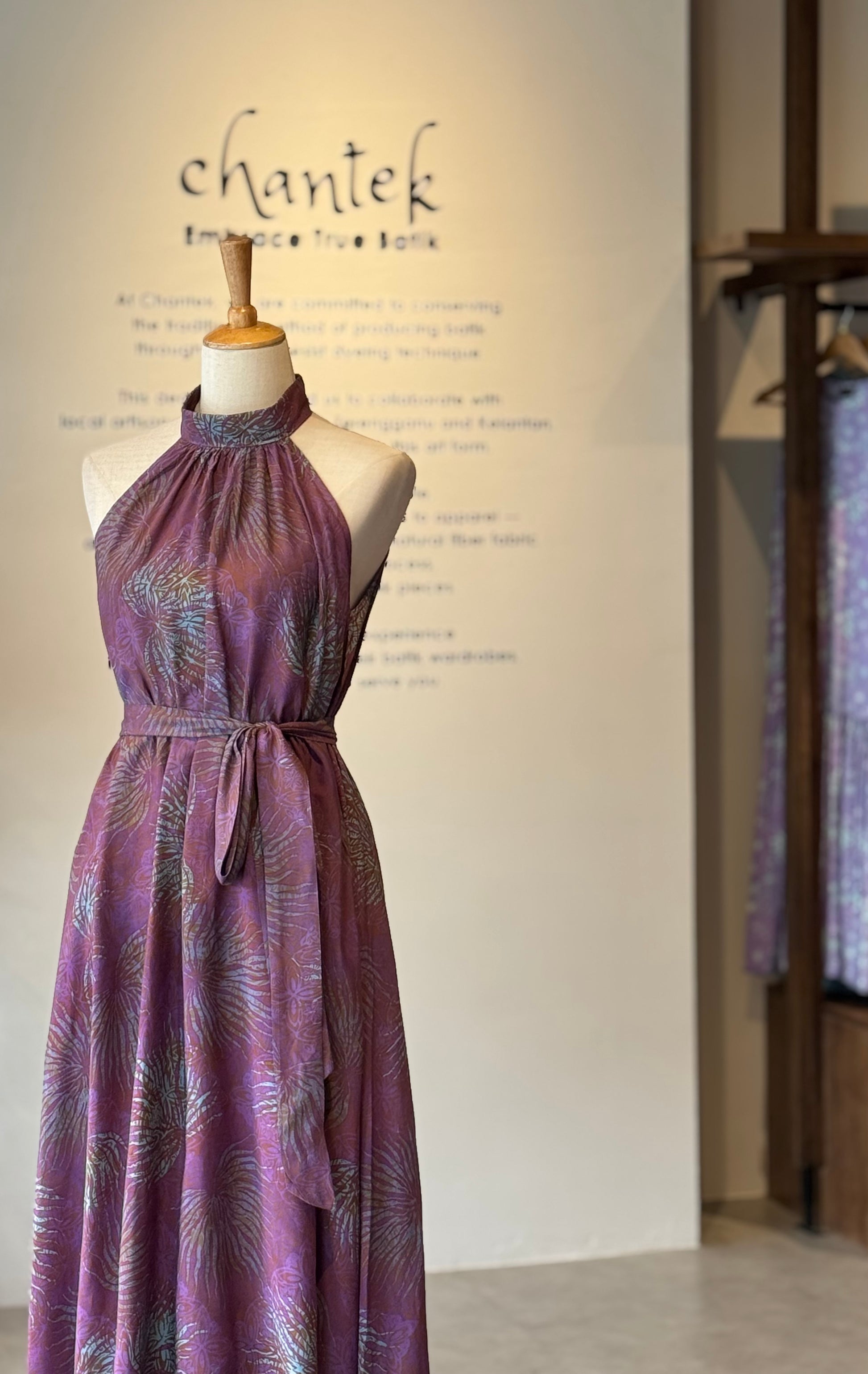 This relaxed-fit halter neck maxi dress is elevated with soft gathers around the neckline that enhance the subtle A-line silhouette.