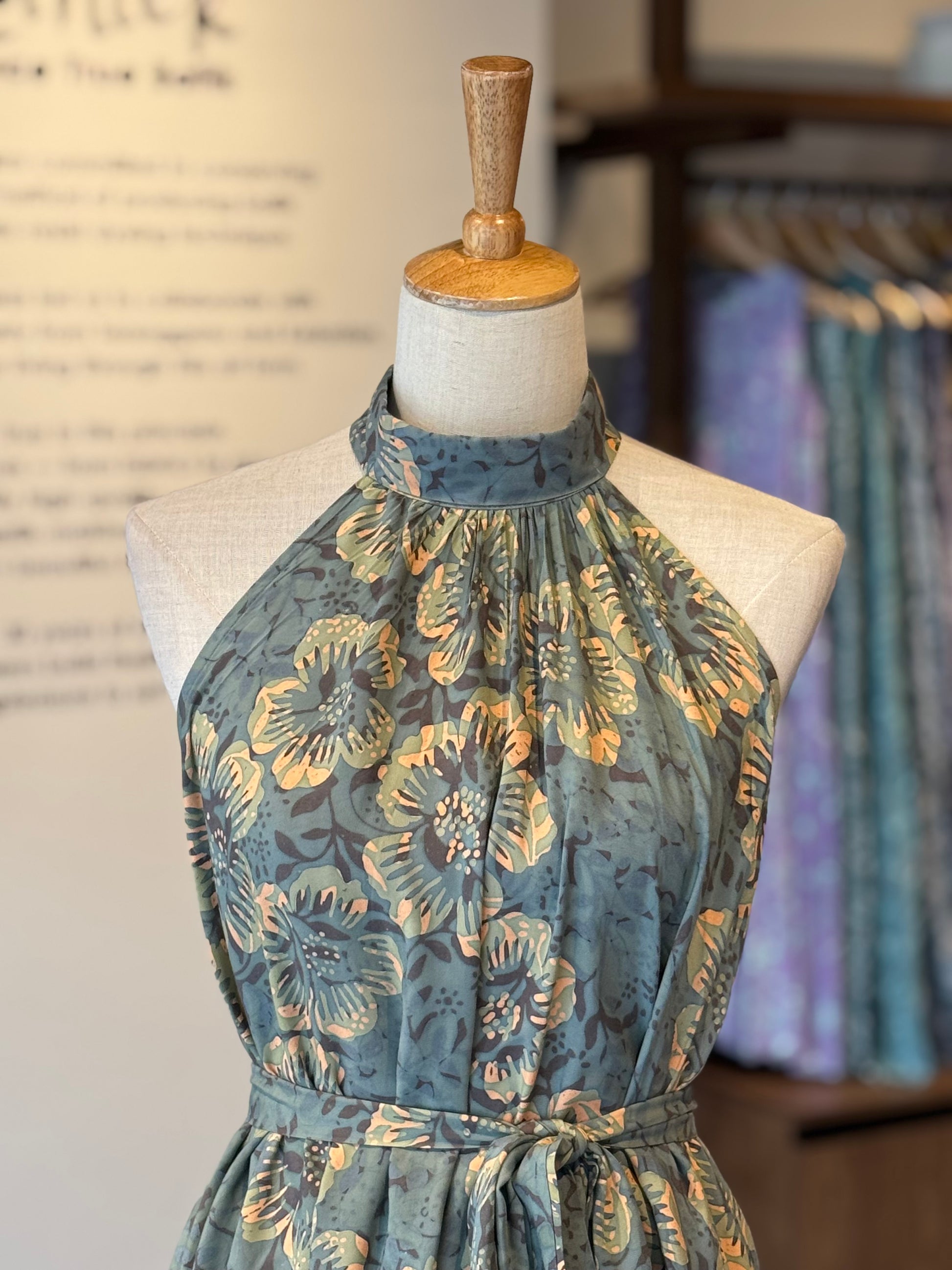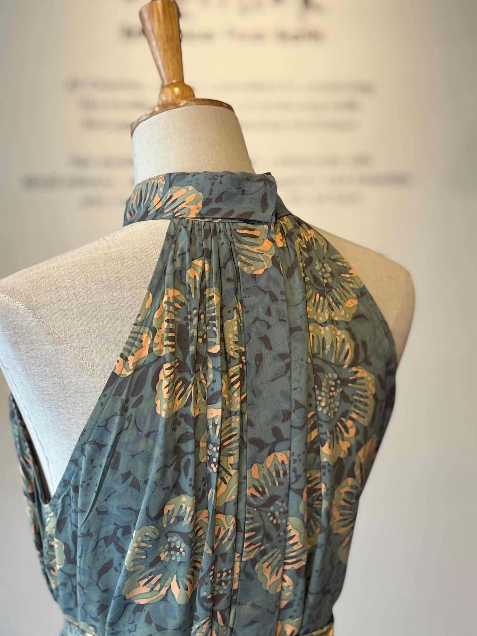 This relaxed-fit halter neck maxi dress is elevated with soft gathers around the neckline that enhance the subtle A-line silhouette.