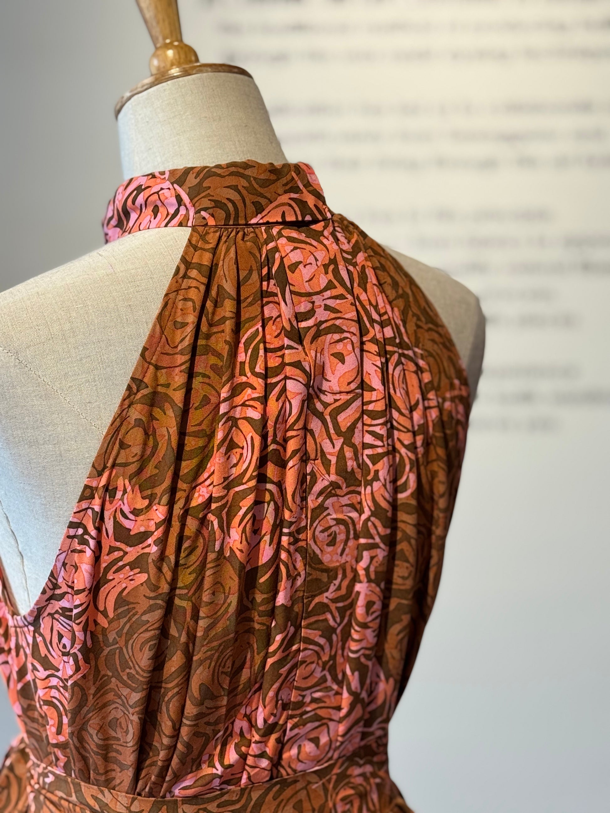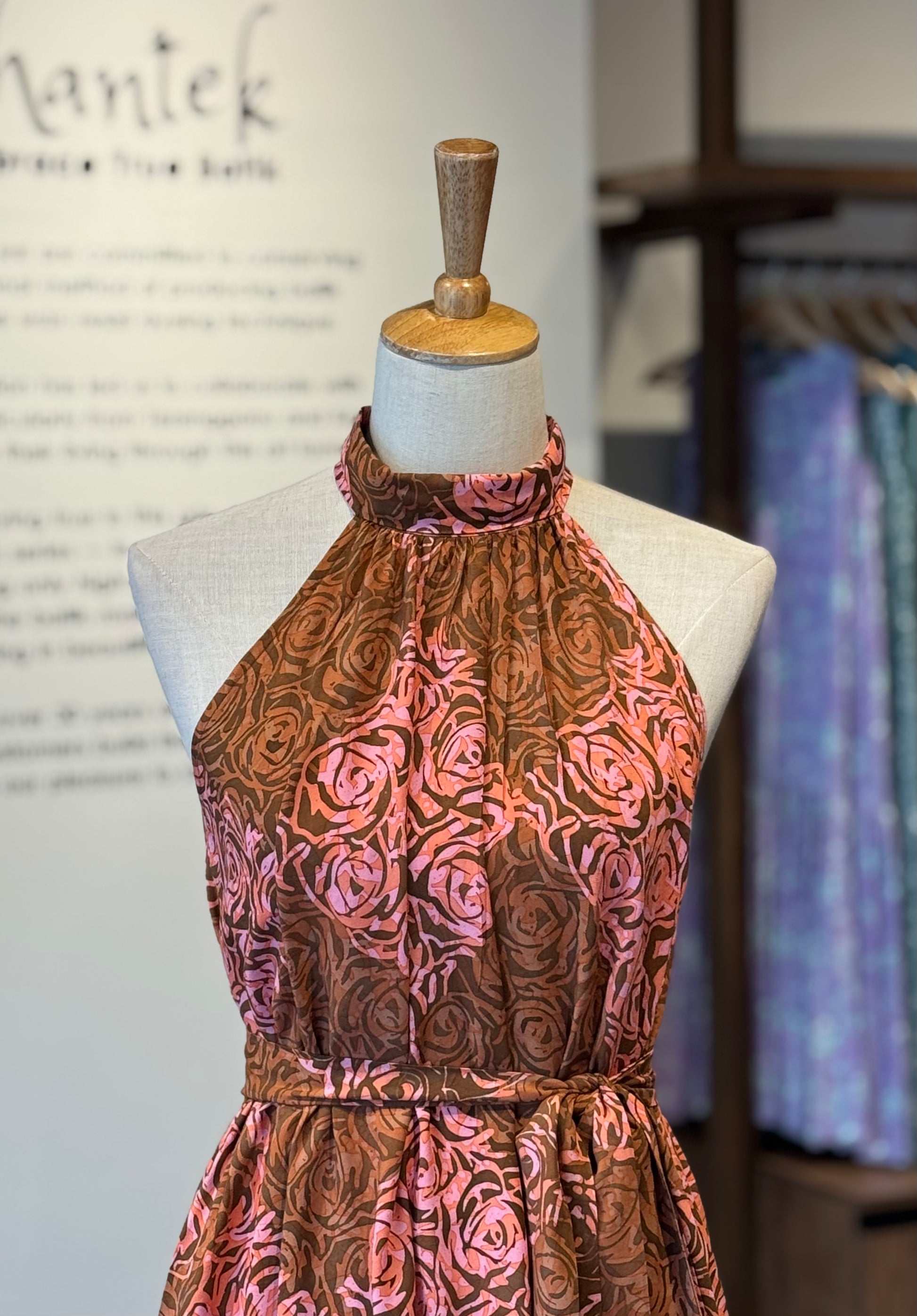 This relaxed-fit halter neck maxi dress is elevated with soft gathers around the neckline that enhance the subtle A-line silhouette.