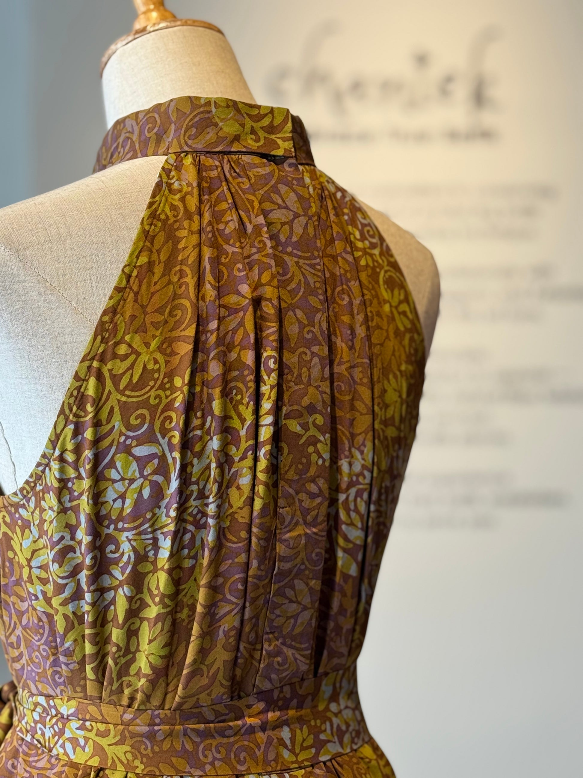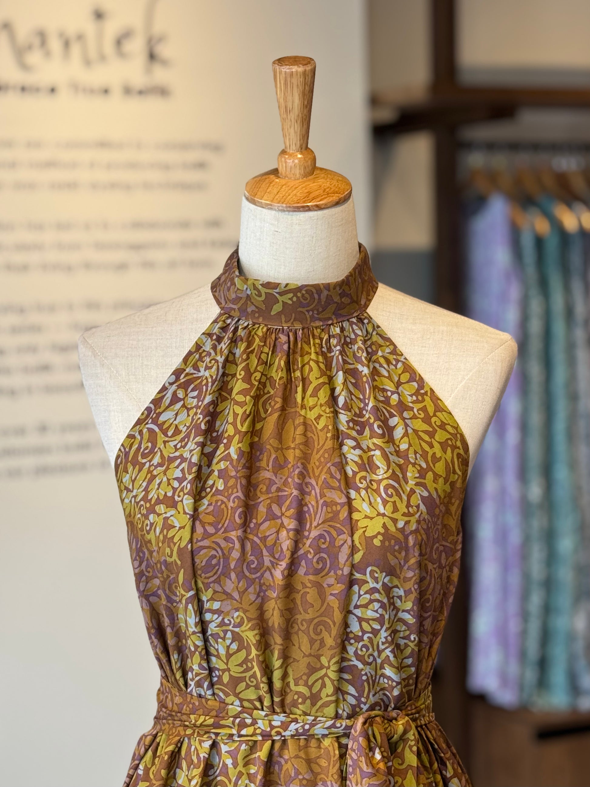 This relaxed-fit halter neck maxi dress is elevated with soft gathers around the neckline that enhance the subtle A-line silhouette.