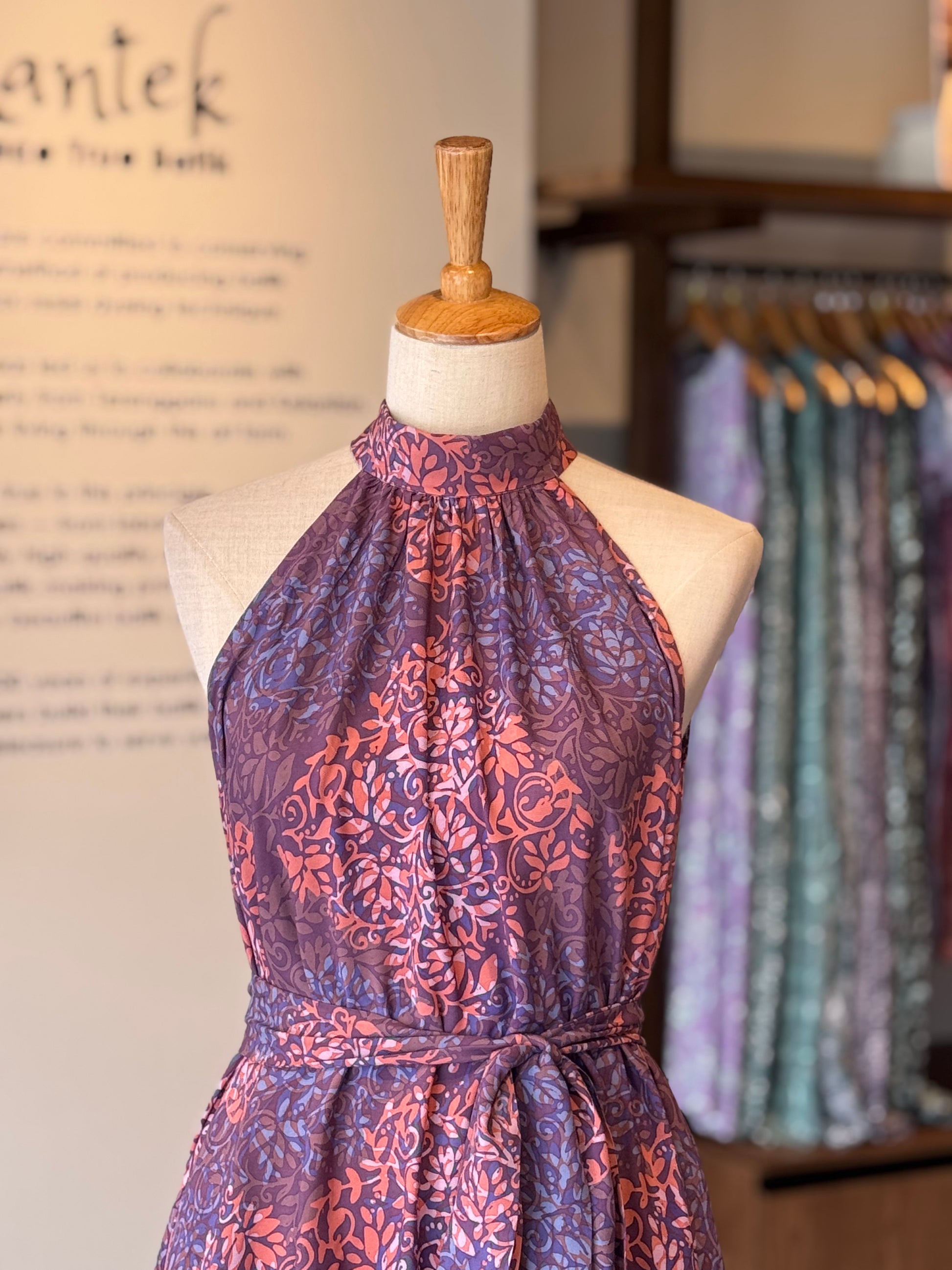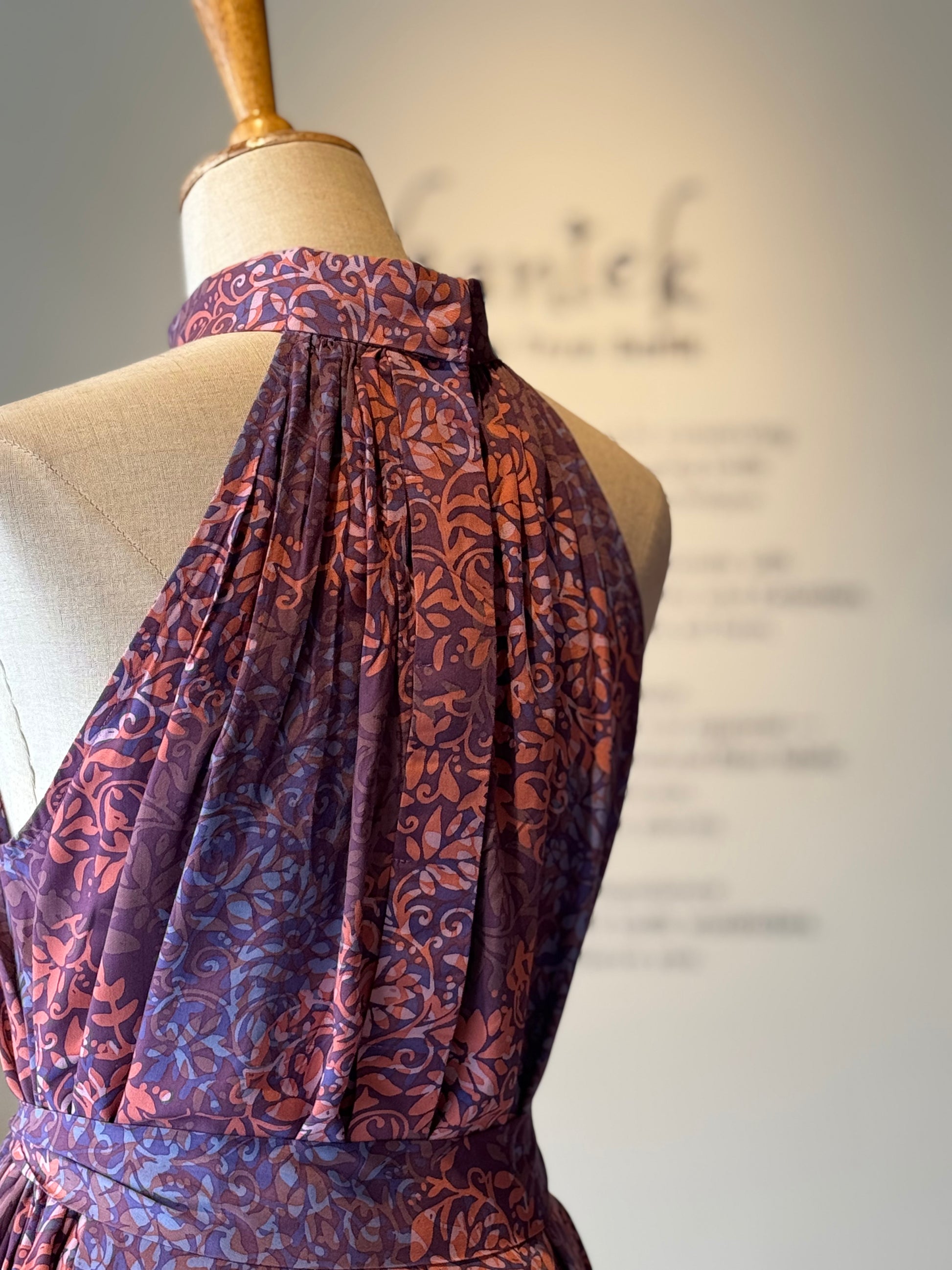 This relaxed-fit halter neck maxi dress is elevated with soft gathers around the neckline that enhance the subtle A-line silhouette.