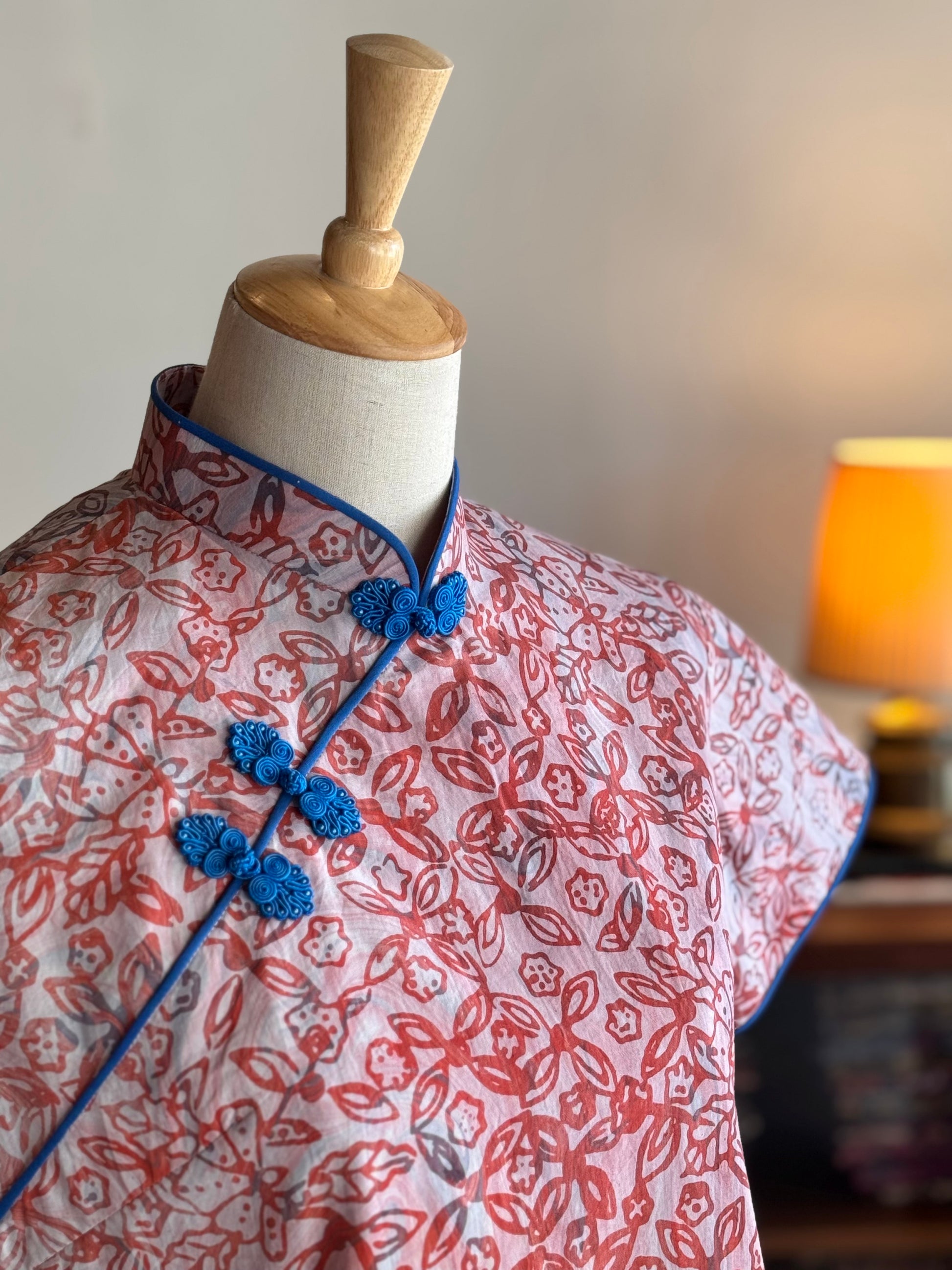 This Pastel Qipao Top is a perfect fusion of traditional elegance and modern style. Crafted from handmade batik fabric in Malaysia, it features soft pastel tones and delicate patterns for a fresh, easy-to-wear look. Comes with Chinese buttons along the top, adding a charming traditional detail. A versatile piece that effortlessly pairs with any outfit, capturing the essence of both classic and contemporary design, ideal for any occasion.