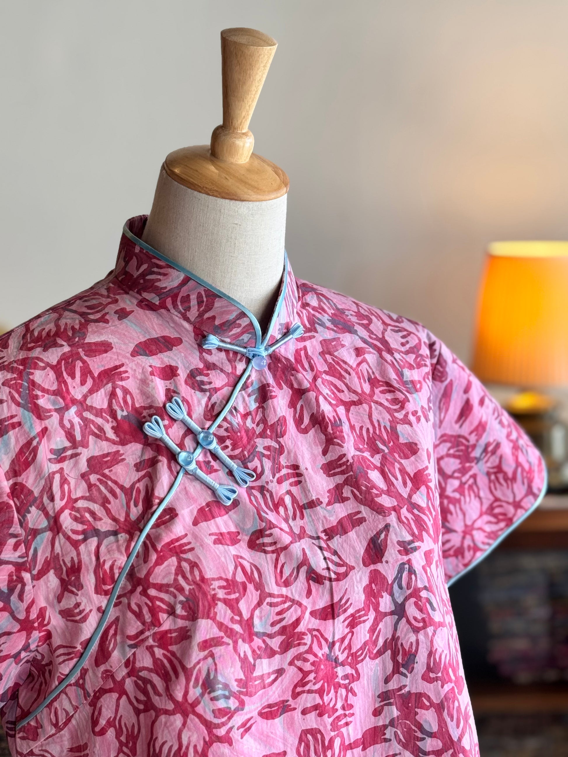 This Pastel Qipao Top is a perfect fusion of traditional elegance and modern style. Crafted from handmade batik fabric in Malaysia, it features soft pastel tones and delicate patterns for a fresh, easy-to-wear look. Comes with Chinese buttons along the top, adding a charming traditional detail. A versatile piece that effortlessly pairs with any outfit, capturing the essence of both classic and contemporary design, ideal for any occasion.
