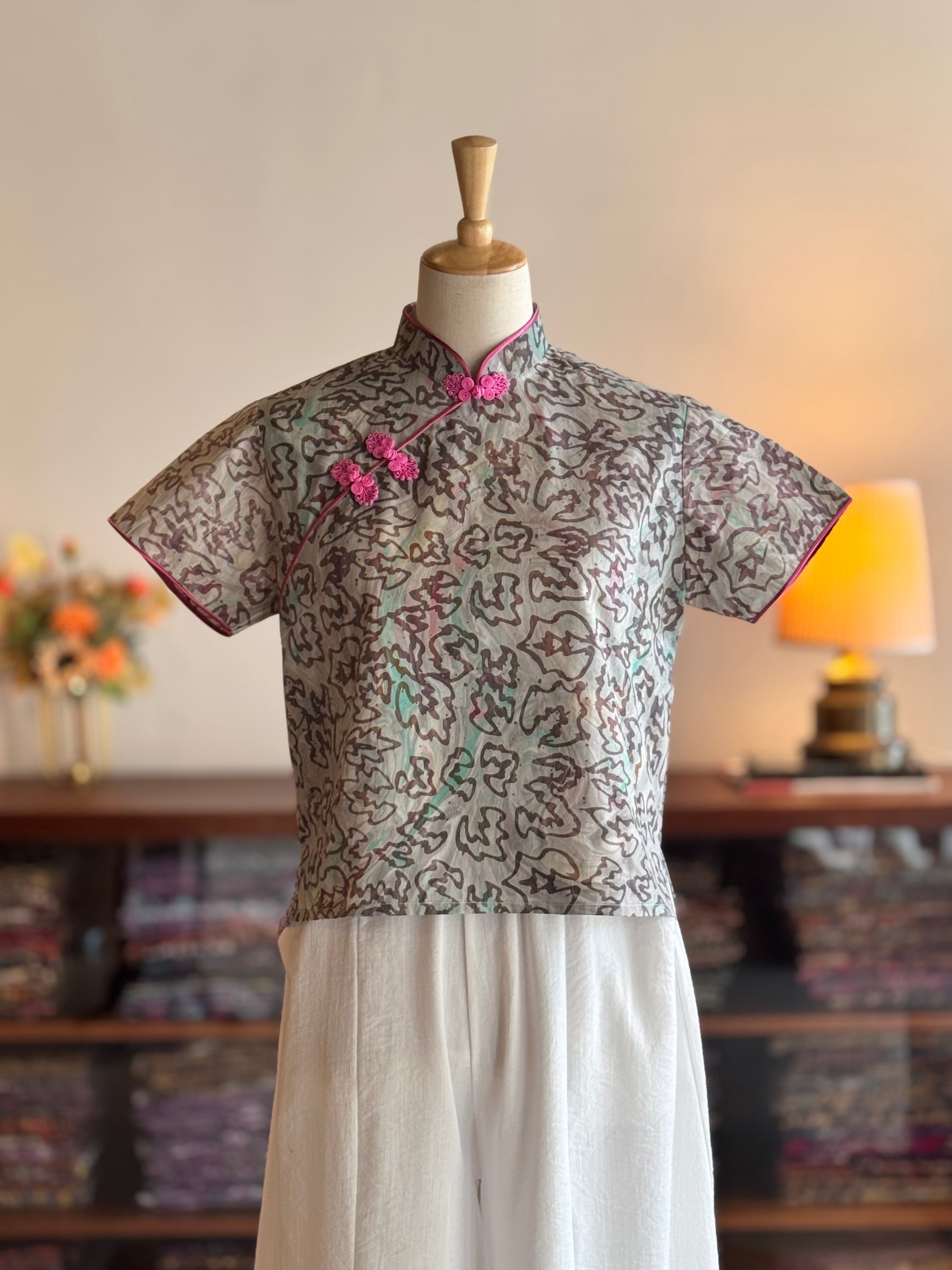 This Pastel Qipao Top is a perfect fusion of traditional elegance and modern style. Crafted from handmade batik fabric in Malaysia, it features soft pastel tones and delicate patterns for a fresh, easy-to-wear look. Comes with Chinese buttons along the top, adding a charming traditional detail. A versatile piece that effortlessly pairs with any outfit, capturing the essence of both classic and contemporary design, ideal for any occasion.