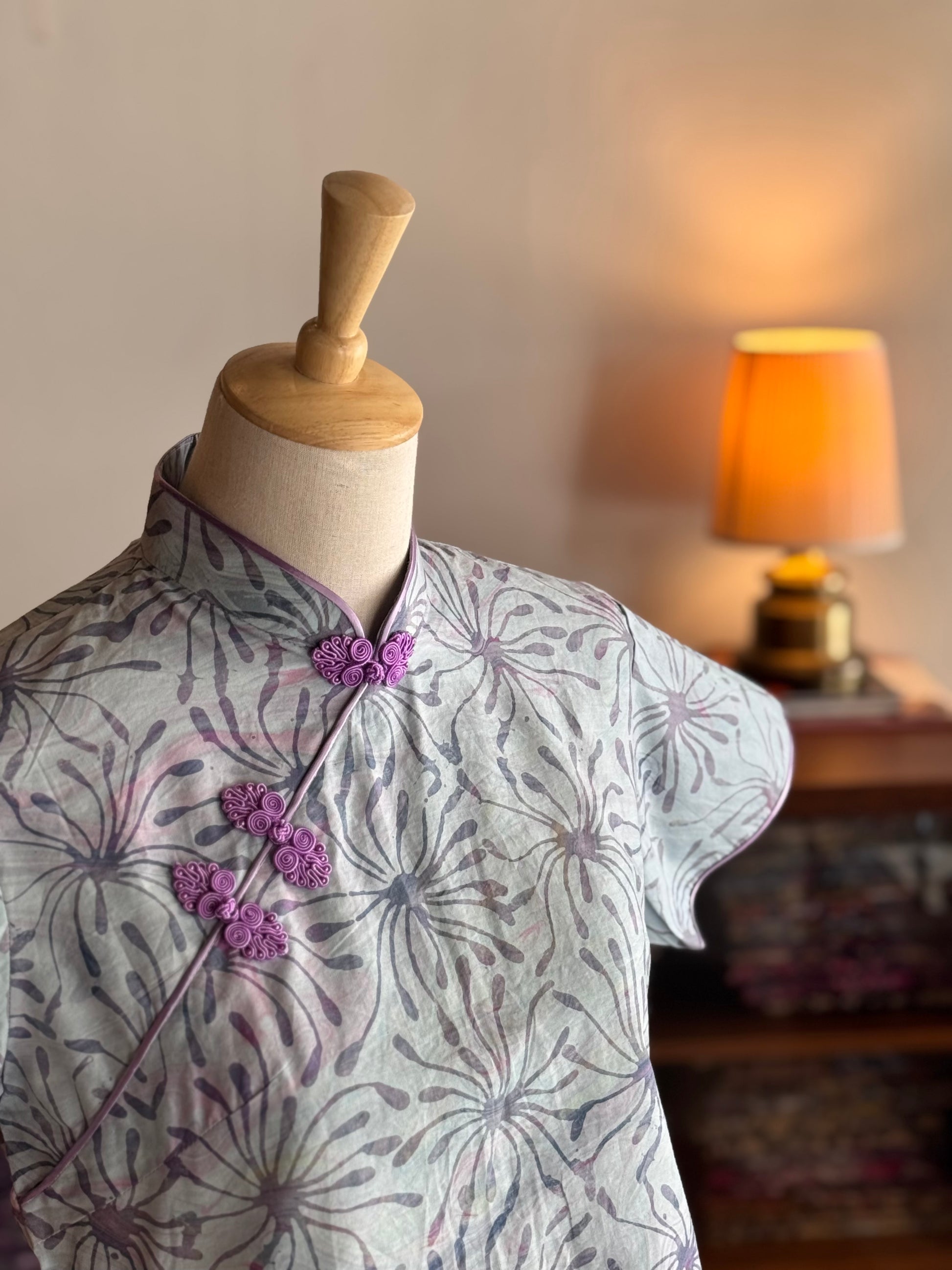 This Pastel Qipao Top is a perfect fusion of traditional elegance and modern style. Crafted from handmade batik fabric in Malaysia, it features soft pastel tones and delicate patterns for a fresh, easy-to-wear look. Comes with Chinese buttons along the top, adding a charming traditional detail. A versatile piece that effortlessly pairs with any outfit, capturing the essence of both classic and contemporary design, ideal for any occasion.