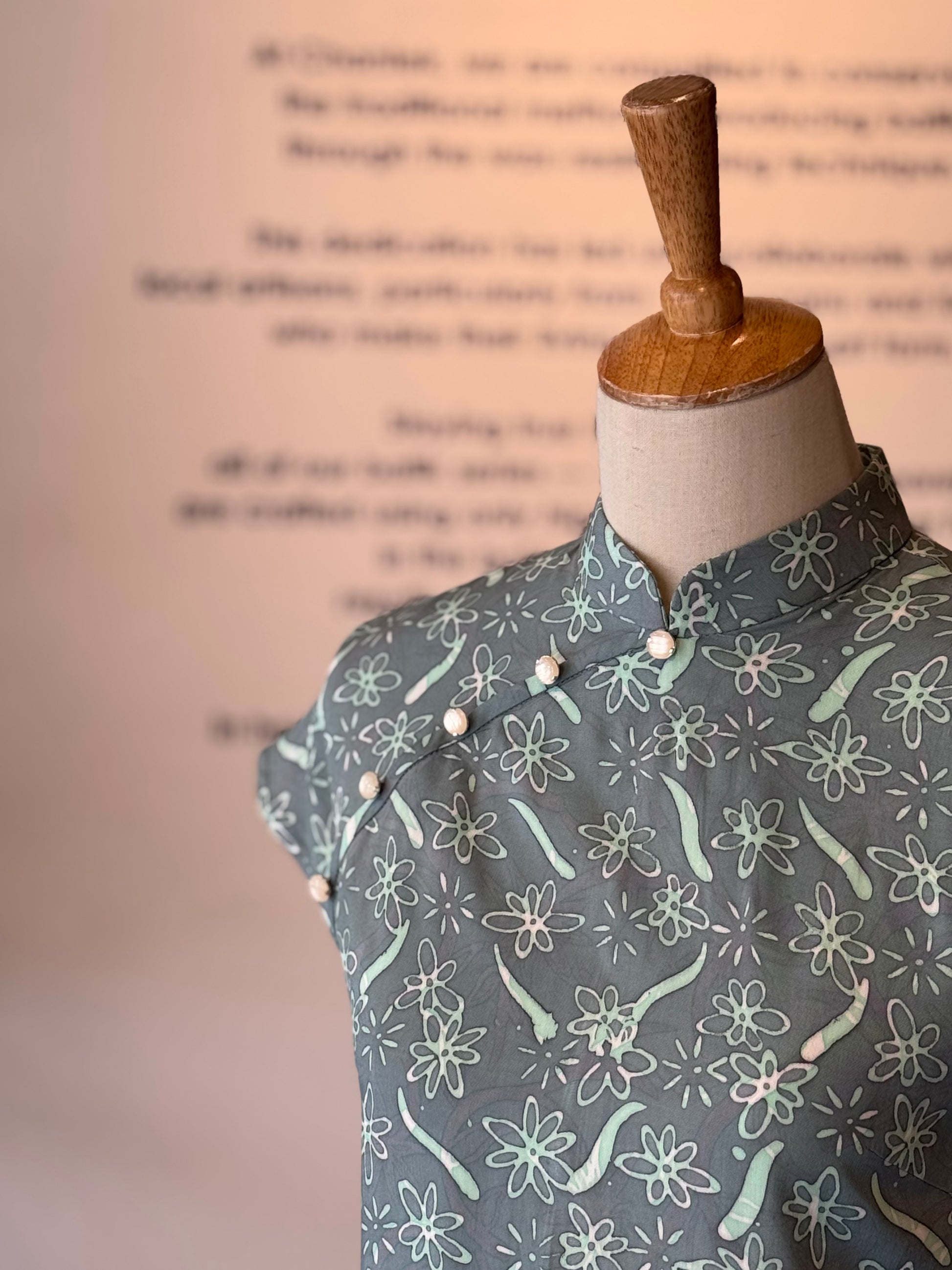 Crafted from exquisite batik fabric, this piece glows with a sweet, charming colour palette, offering a look that feels effortlessly delicate, refined, and timeless.