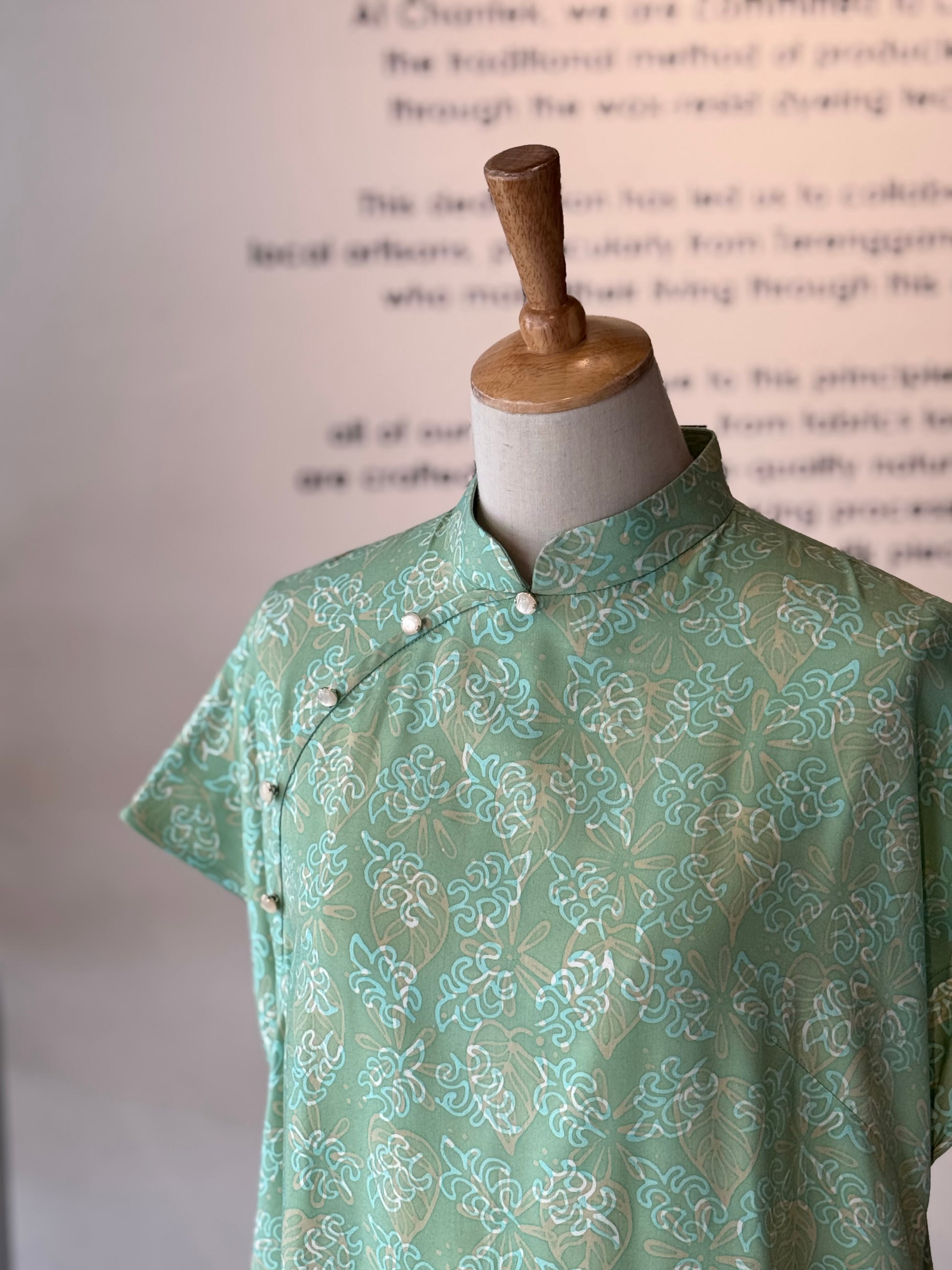 Crafted from exquisite batik fabric, this piece glows with a sweet, charming colour palette, offering a look that feels effortlessly delicate, refined, and timeless.