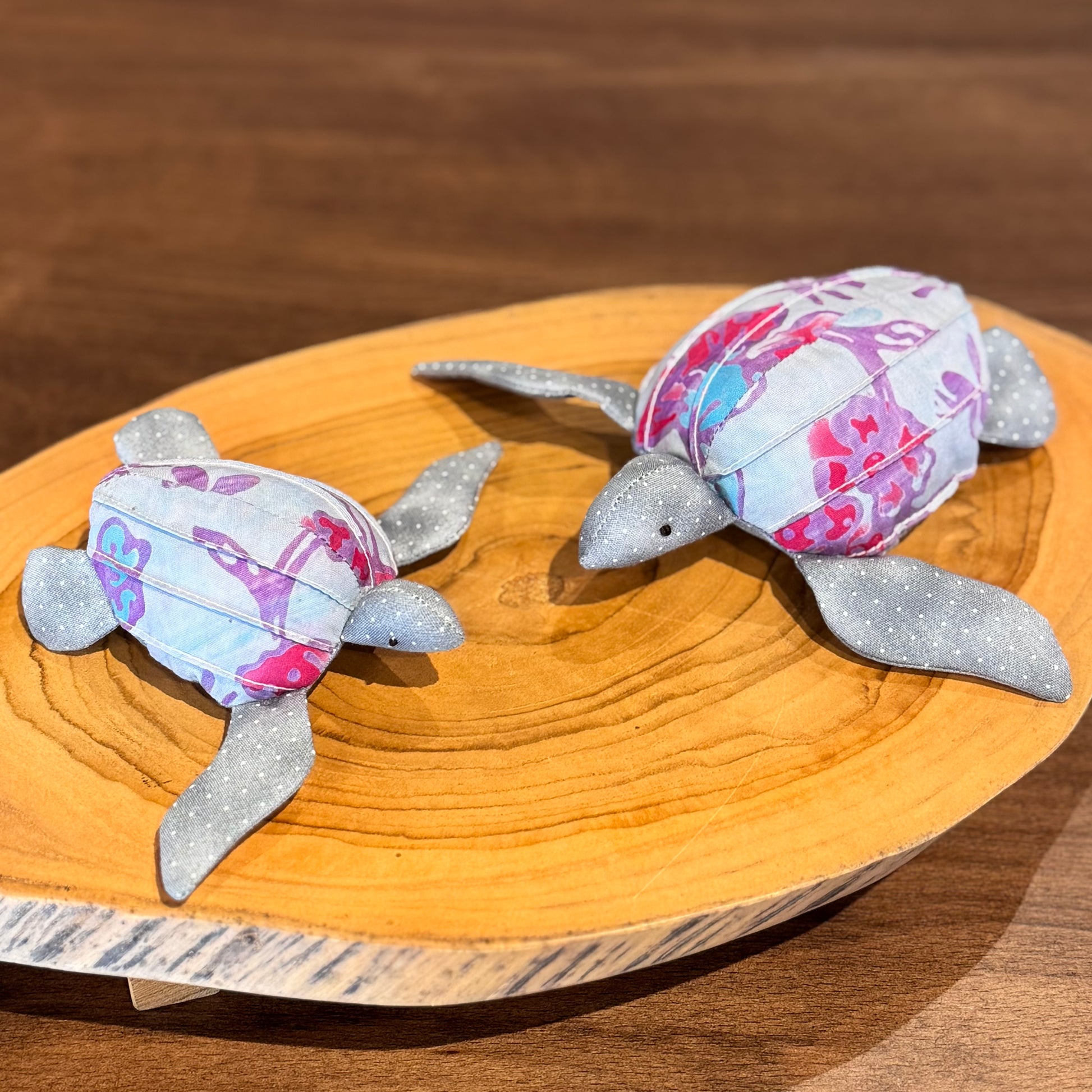 Toy set includes: 2 turtles (1 big and 1 small), a soft copy PDF of the sea turtle information colouring sheet, and 1 toy keepingÂ