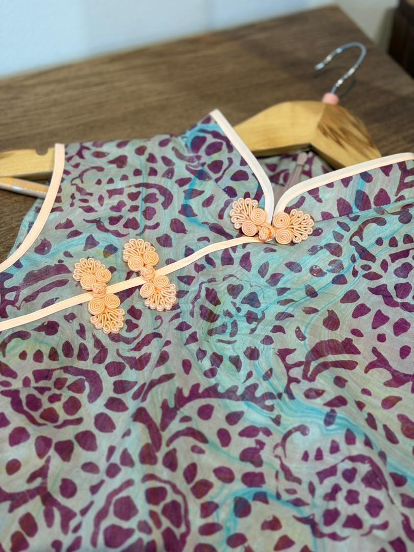 This sleeveless pastel qipao top is a perfect fusion of traditional elegance and modern style. Crafted from handmade batik fabric in Malaysia, it features soft pastel tones and delicate patterns for a fresh, easy-to-wear look. A versatile piece that effortlessly pairs with any outfit, capturing the essence of both classic and contemporary design—ideal for any occasion.